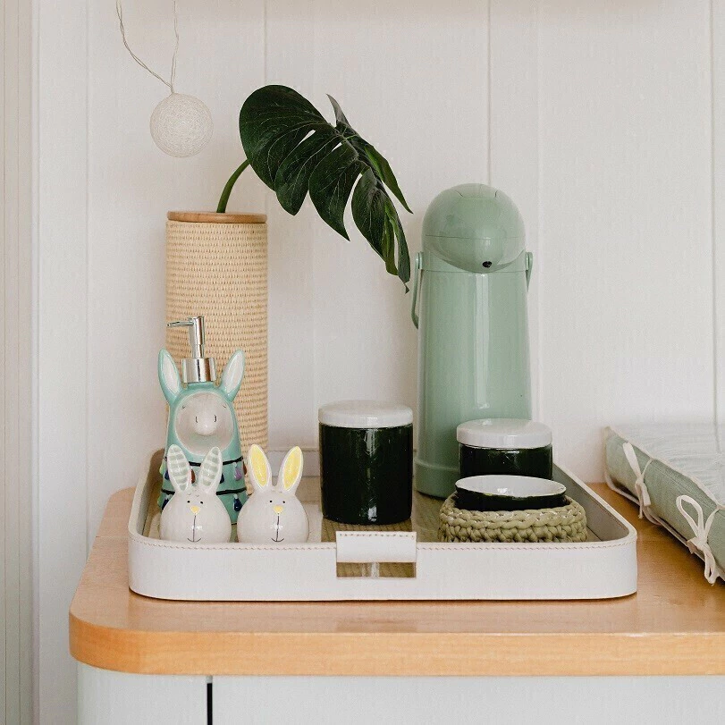 Além de sua funcionalidade como bandeja, a peça pode ser utilizada como objeto decorativo e de organização de itens na sala, quarto, banheiro, mesa de café, cozinha e ambientes comerciais.