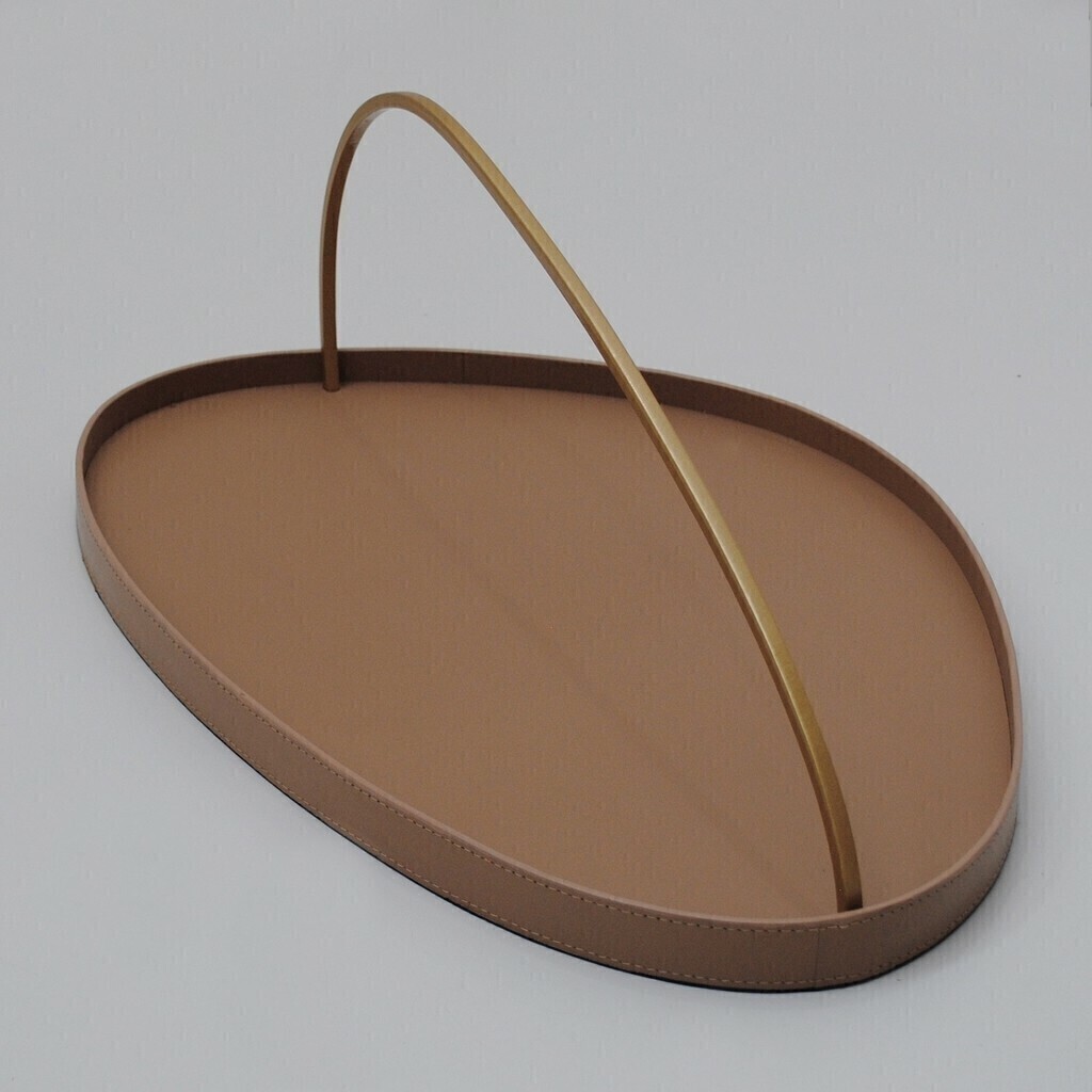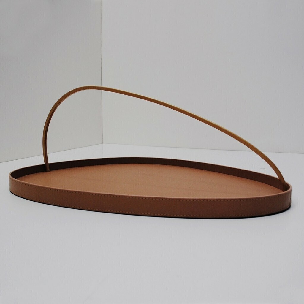 Com a base inteiramente revestida por couro reconstituído e a alça decorativa em metal, além de sua funcionalidade como bandeja, também pode ser utilizada como objeto de decoraçãoeorganização de itens na sala, quarto, banheiro, hall de entrada, mesa de café, cozinha e ambientes comerciais.
