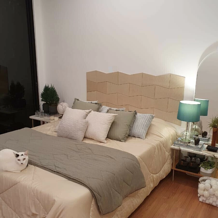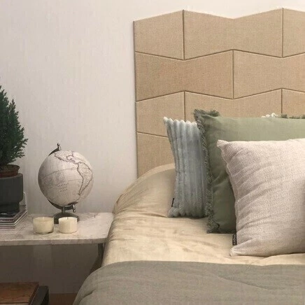 Módulos desenvolvidos em mdf revestido com palha artificial para a montagem de cabeceiras, trazendo aconchego e sofisticação ao seu local de descanso.