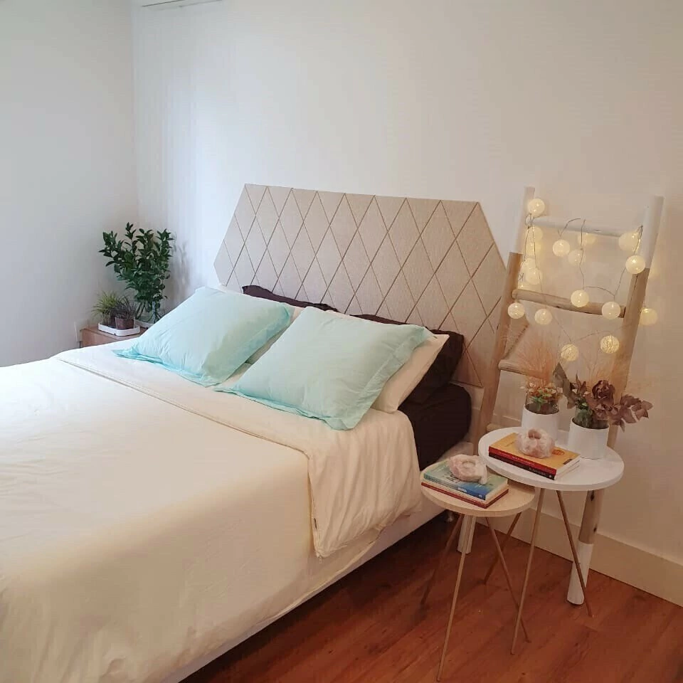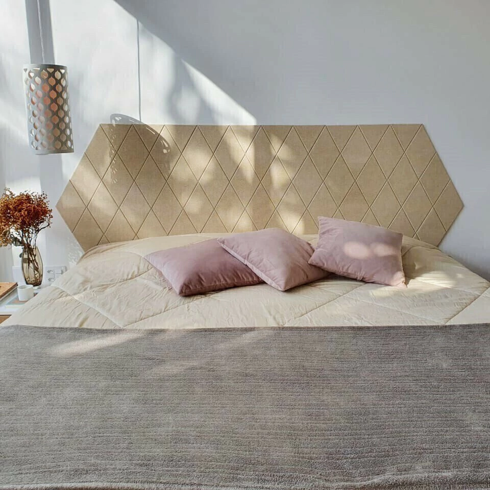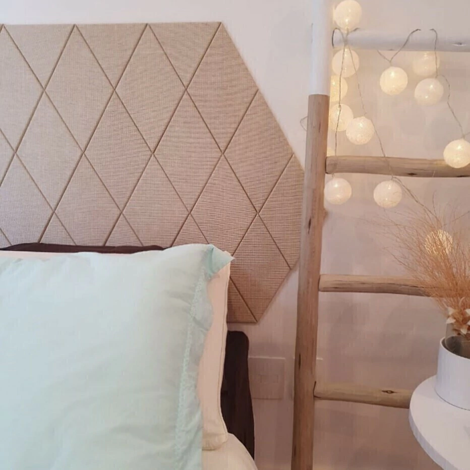 Módulos desenvolvidos em mdf revestido com palha artificial para a montagem de cabeceiras, trazendo aconchego e sofisticação ao seu local de descanso.