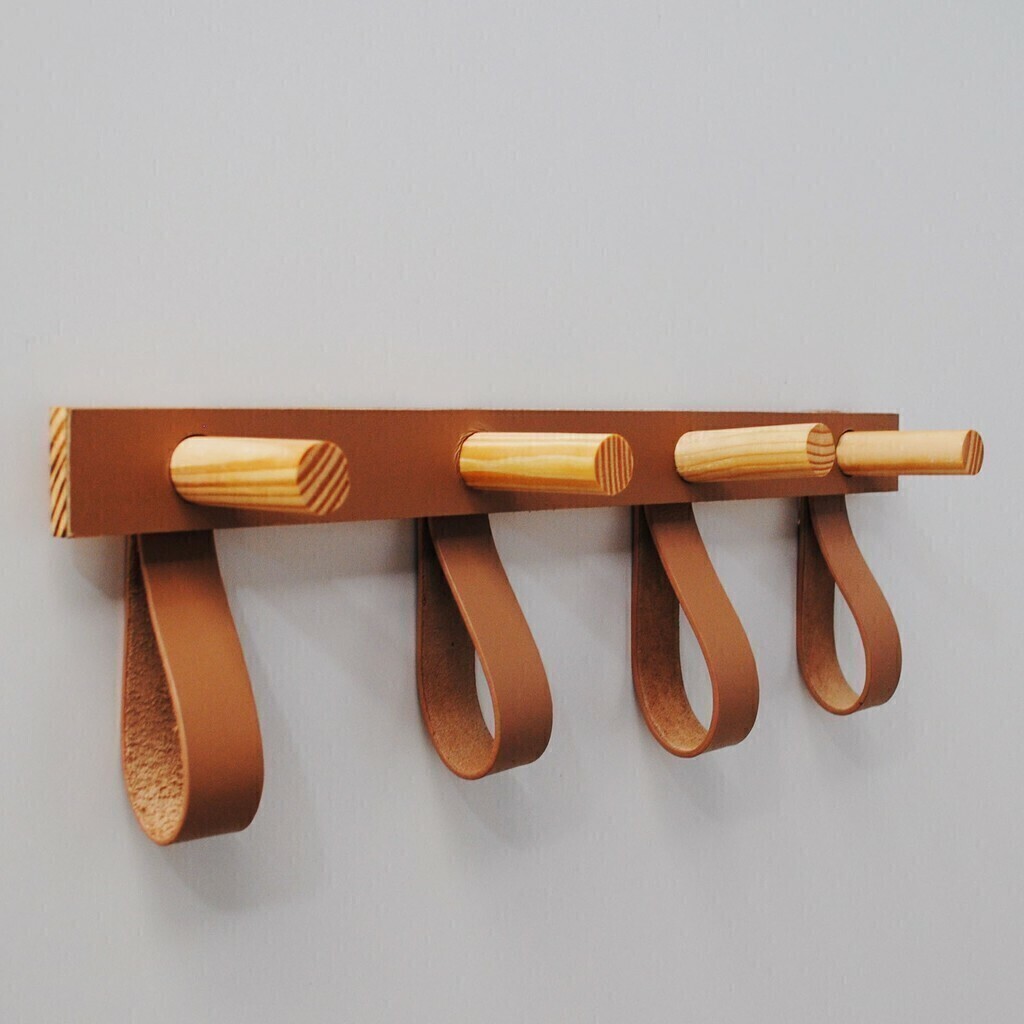 A versão Molti Parrot traz quatro unidades acopladas em uma base de madeira revestida em couro, garantindo ainda mais praticidade na hora de pendurar casacos, bolsas, chapéus e outros acessórios.