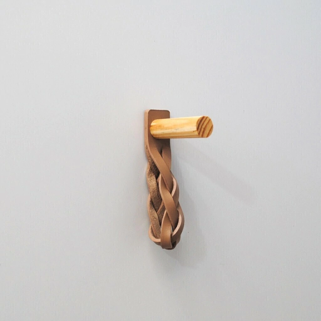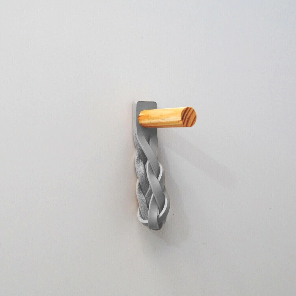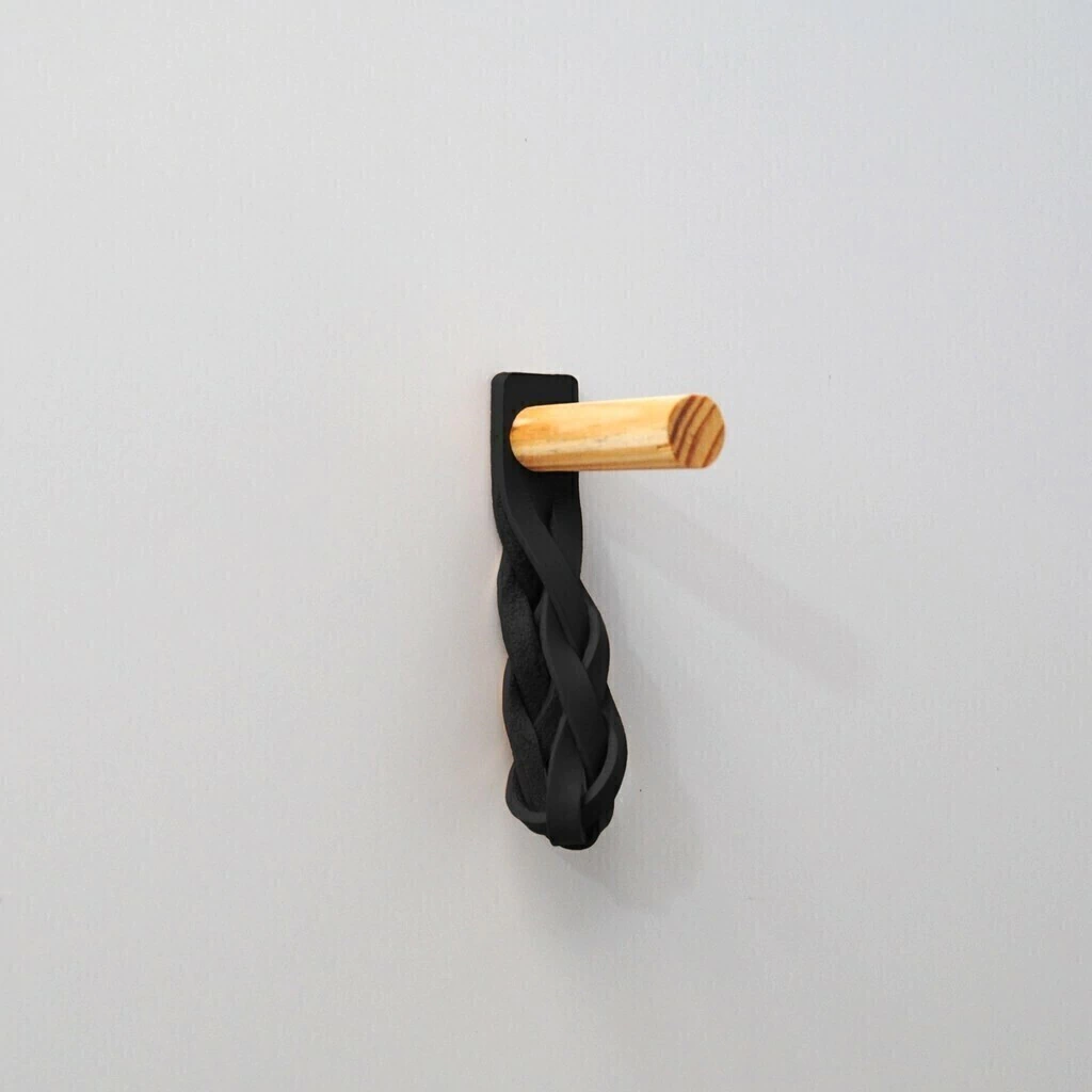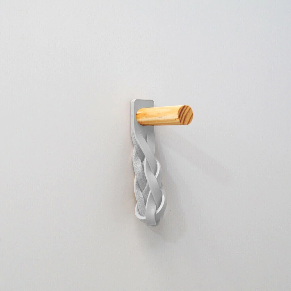 Cabideiro / Pendurador Treccia Oruy, peça artesanal desenvolvida em couro trançado e madeira maciça, ideal para pendurar casacos, bolsas, chapéus e outros acessórios.