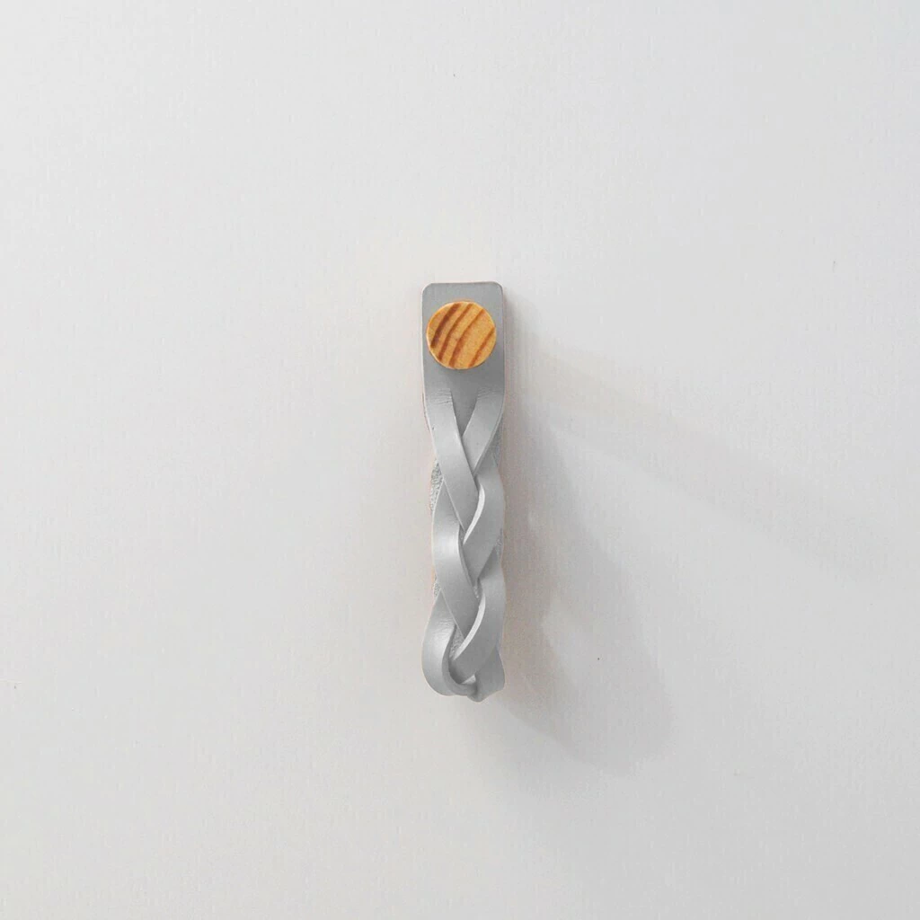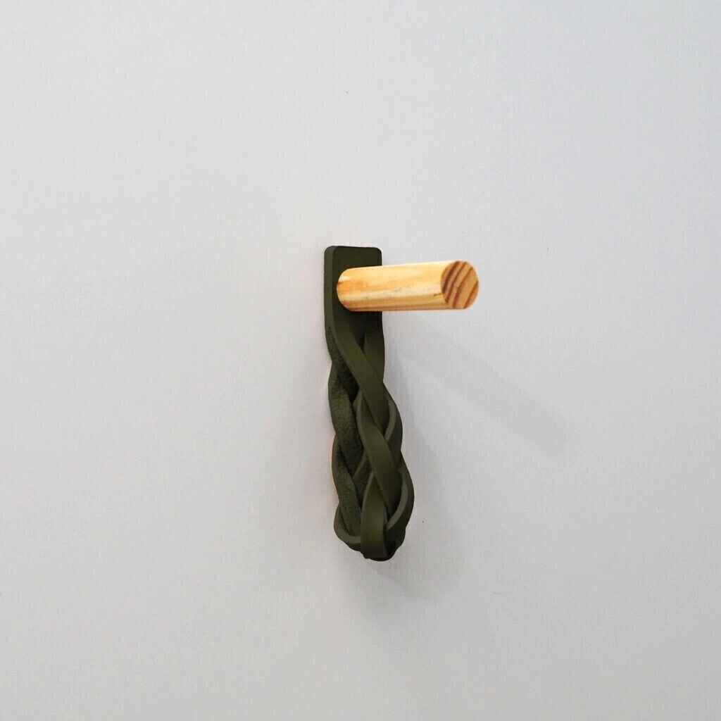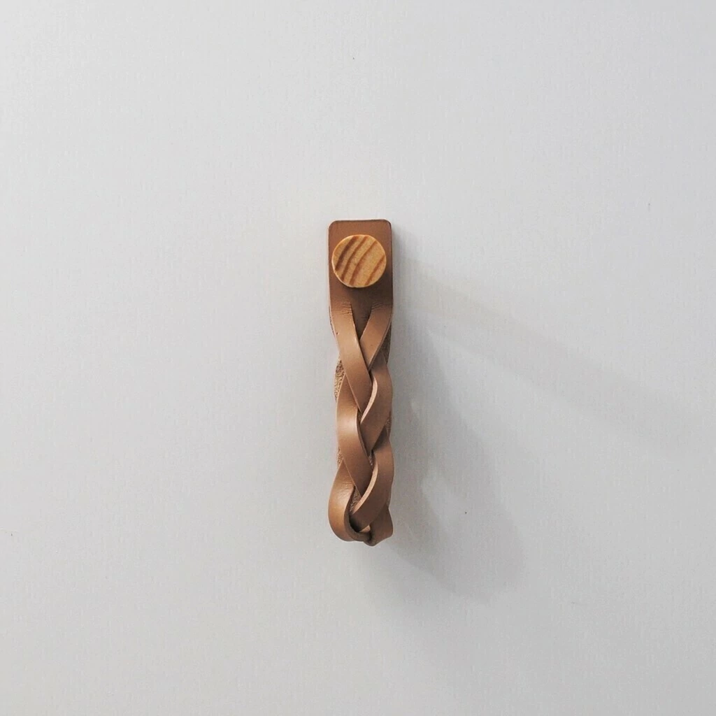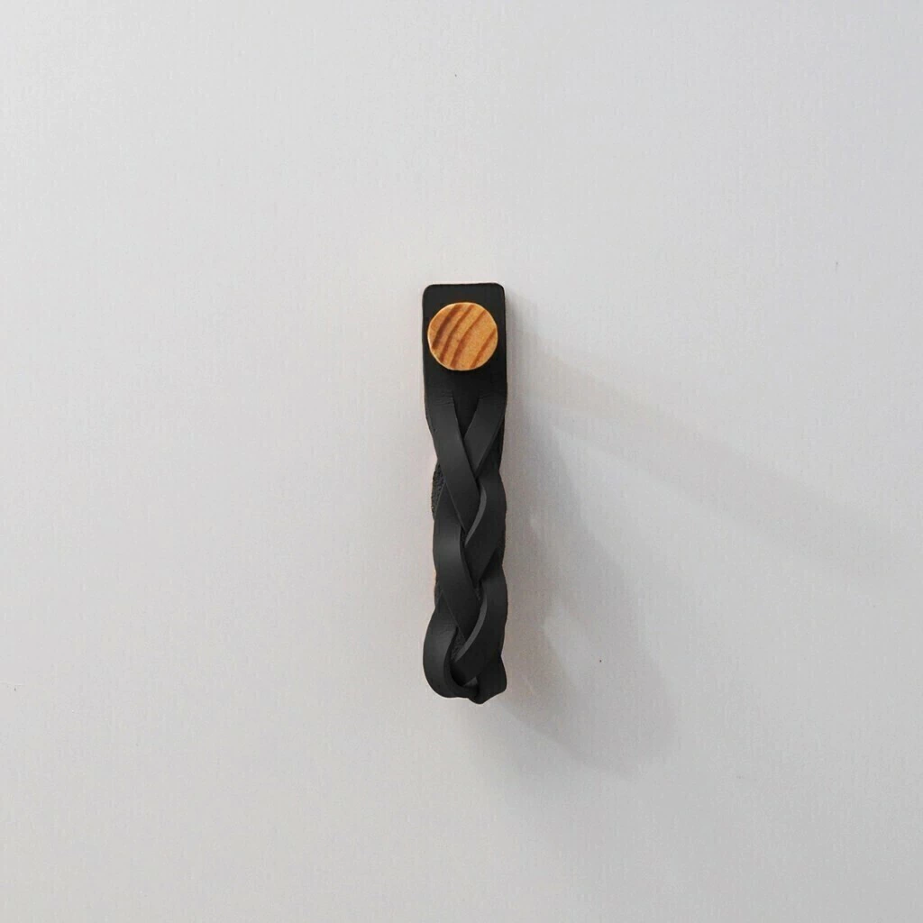 Cabideiro / Pendurador Treccia Oruy, peça artesanal desenvolvida em couro trançado e madeira maciça, ideal para pendurar casacos, bolsas, chapéus e outros acessórios.