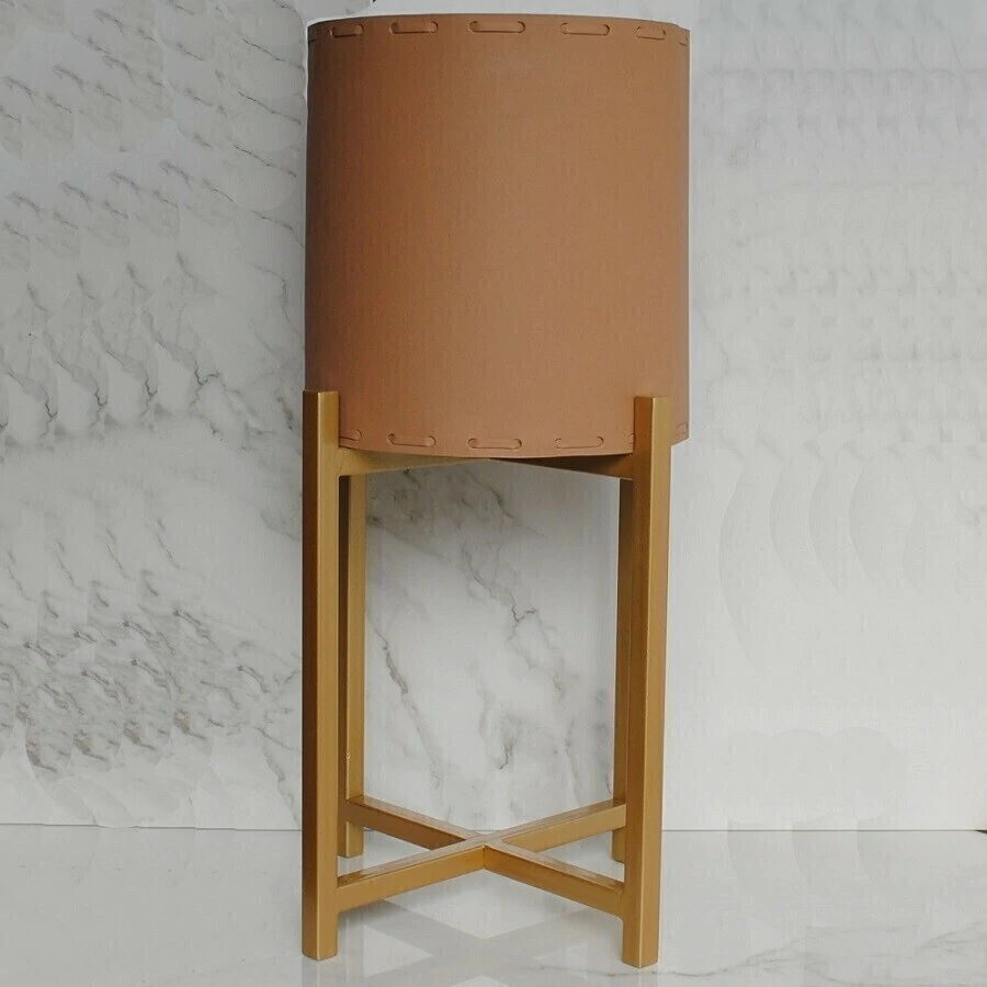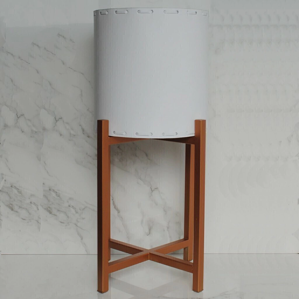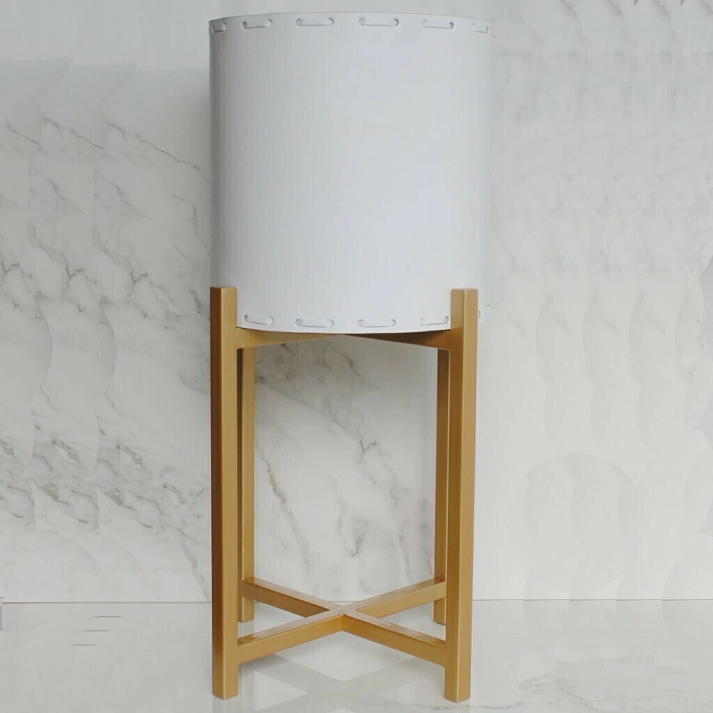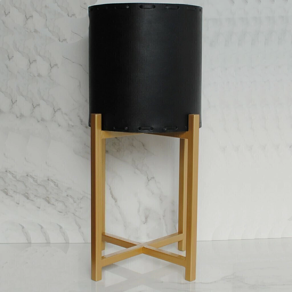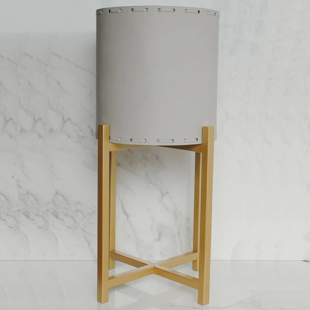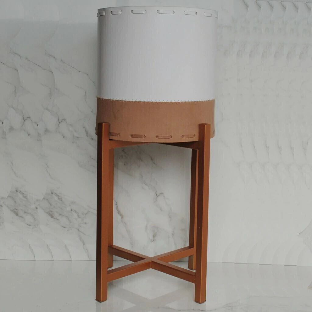 O Cachepot Gold em couro reconstituídoé uma releitura do Cachepot Vago, com o mesmo conceito de leveza e fluidez proposto por sua criadora, a arquiteta Marília Zimmermann.