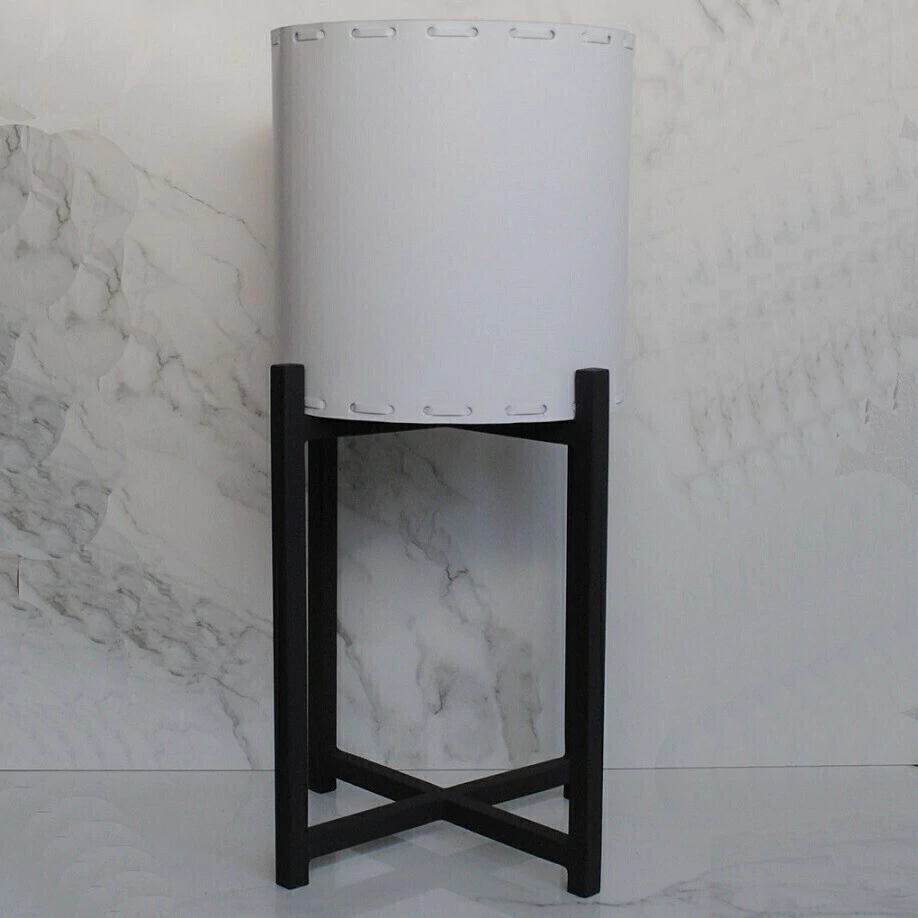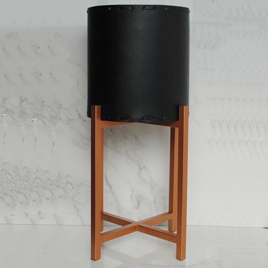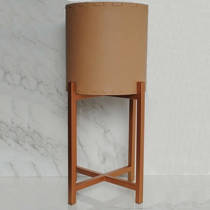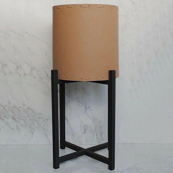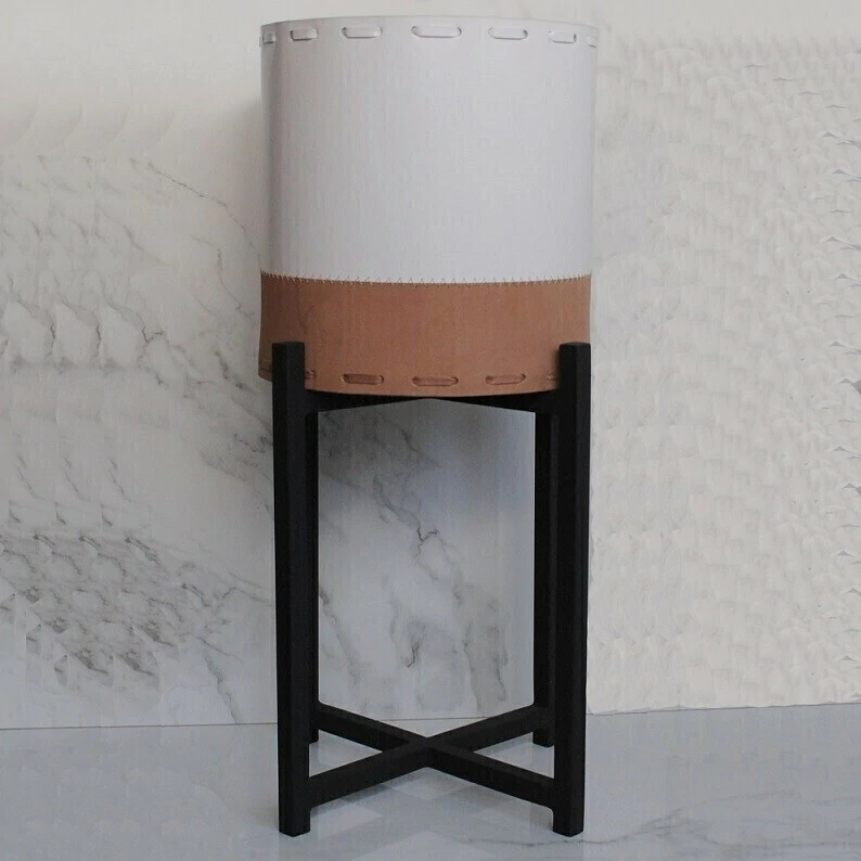 O cachepot é produzido em couro reconstituído, de forma artesanal, com o acabamento e a exclusividade Oruy.