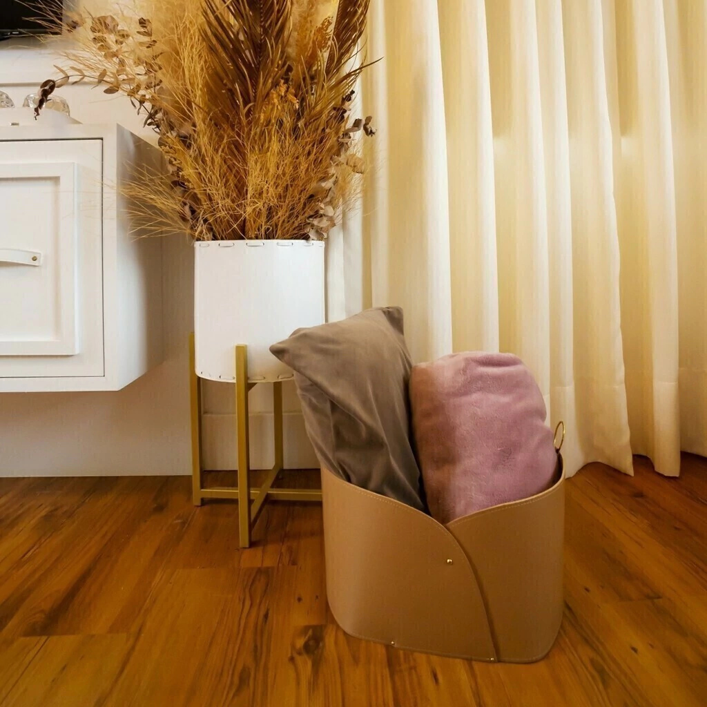 O Cachepot Mary com Argolas M é uma peça projetada pela arquiteta e designer Paola Cury, desenvolvida para levar um toque de exclusividade a decoração com plantas. Sua versatilidade permite que seja utilizado também como organizador de mantas, almofadas, brinquedos, e até como porta revistas.