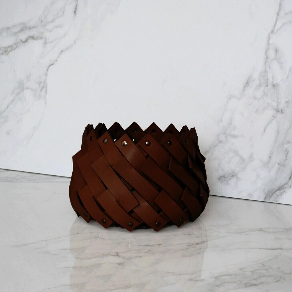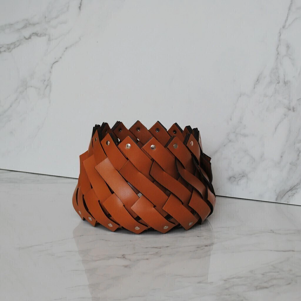 Fabricado em couro e com acabamento impecável, essa peça de Fácil ambientação pode ser utilizada como cachepot, centro de mesas, porta revistas, manta e até mesmo brinquedos.