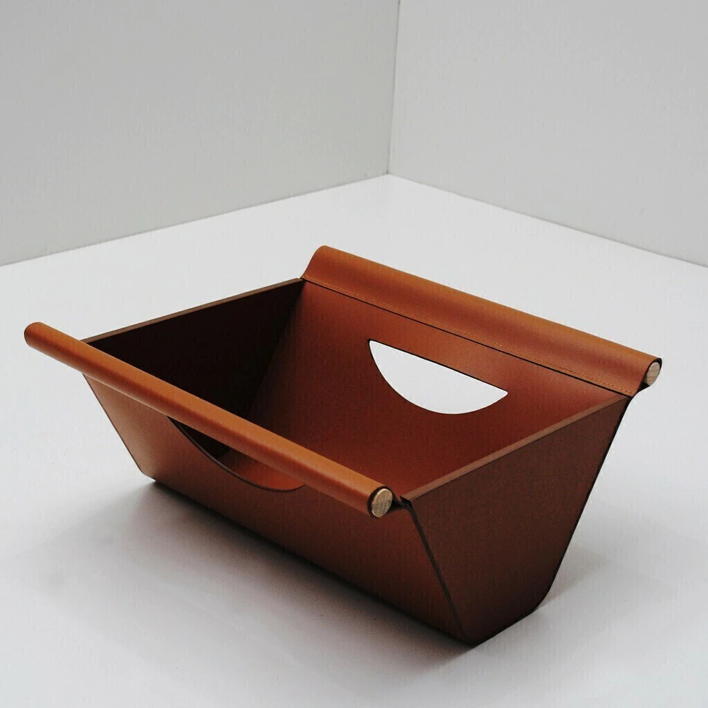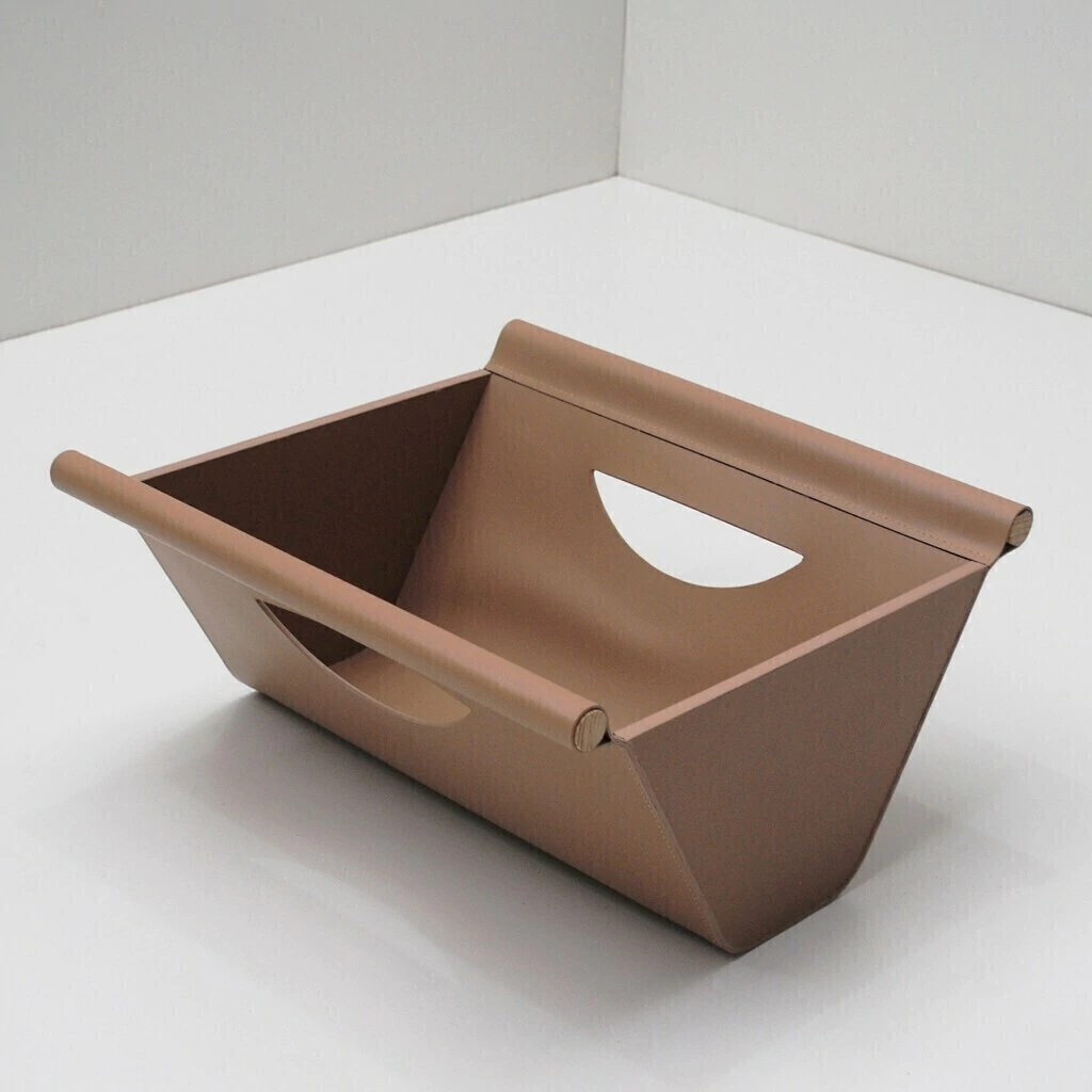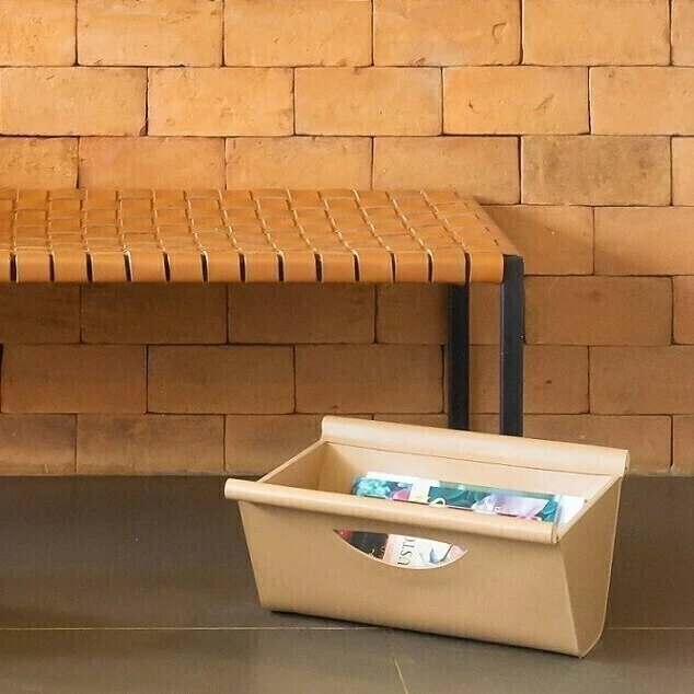 Projetado pela arquiteta e designer Paola Cury, fabricado em couro reconstituído e com acabamento impecável, essa peça de Fácil ambientação pode ser utilizada como revisteiro e também como organizador de mantas, almofadas, brinquedos e itens diversos.