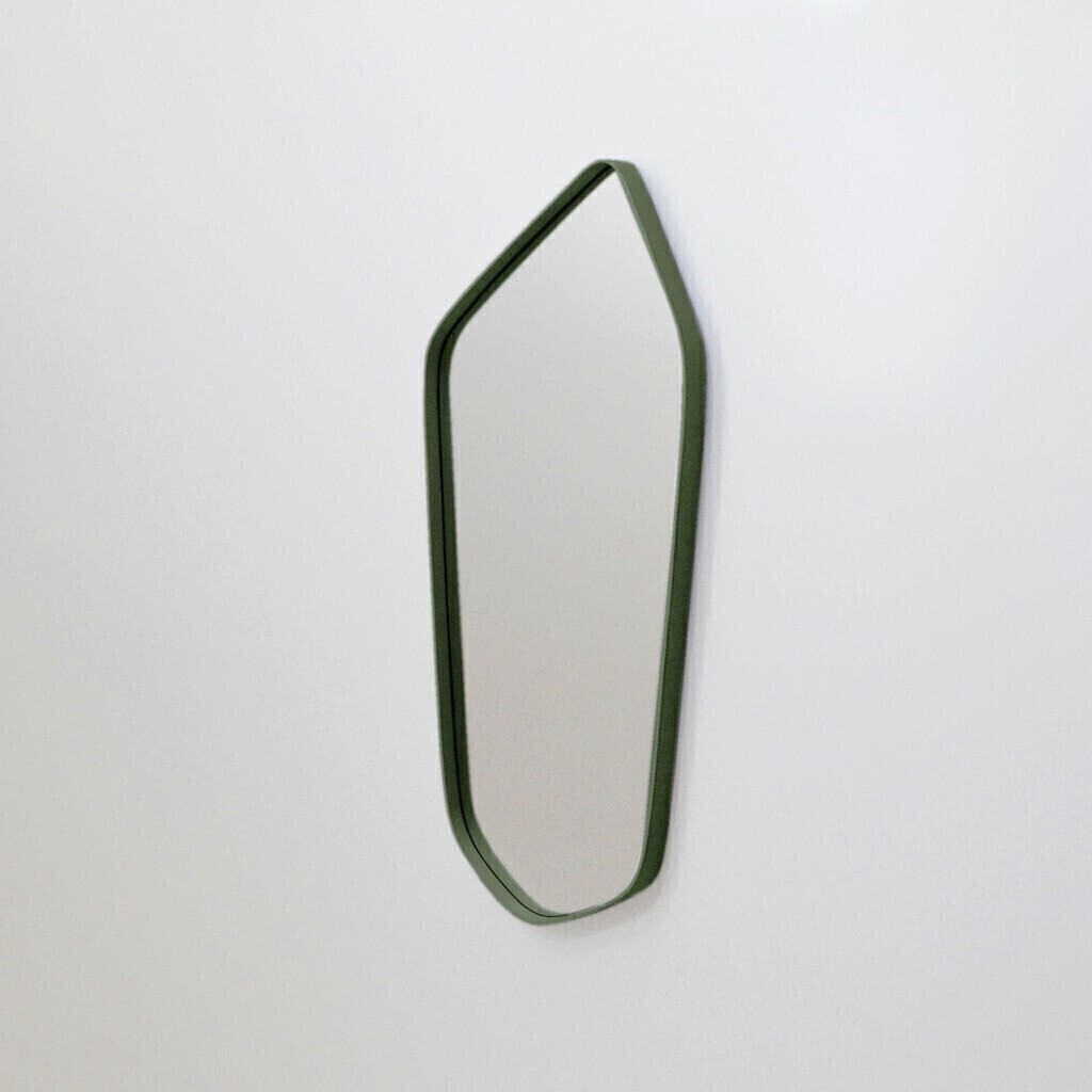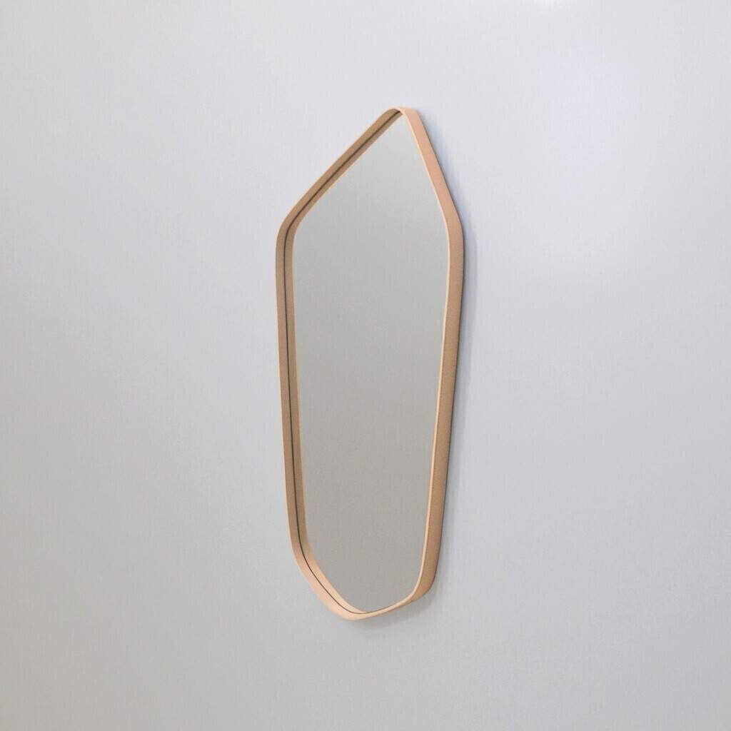 Espelho Orgânico Nápoles Oruy com moldura em couro, um item de decoração versátil e atemporal, podendo compor ambientes diversos como banheiros, salas, quartos, halls e espaços comerciais.