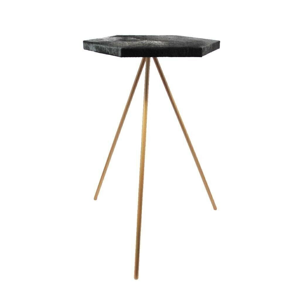 Mesa de canto com tampo hexagonal revestido em couro legítimo, disponível em diversas opções de cores.