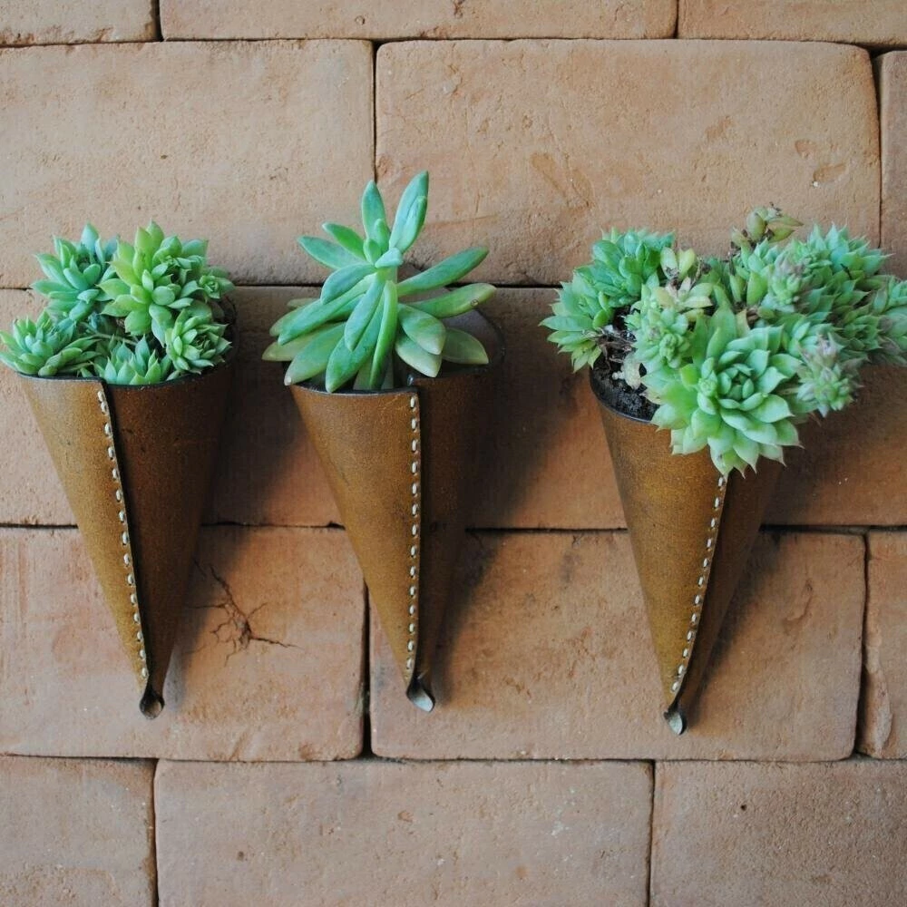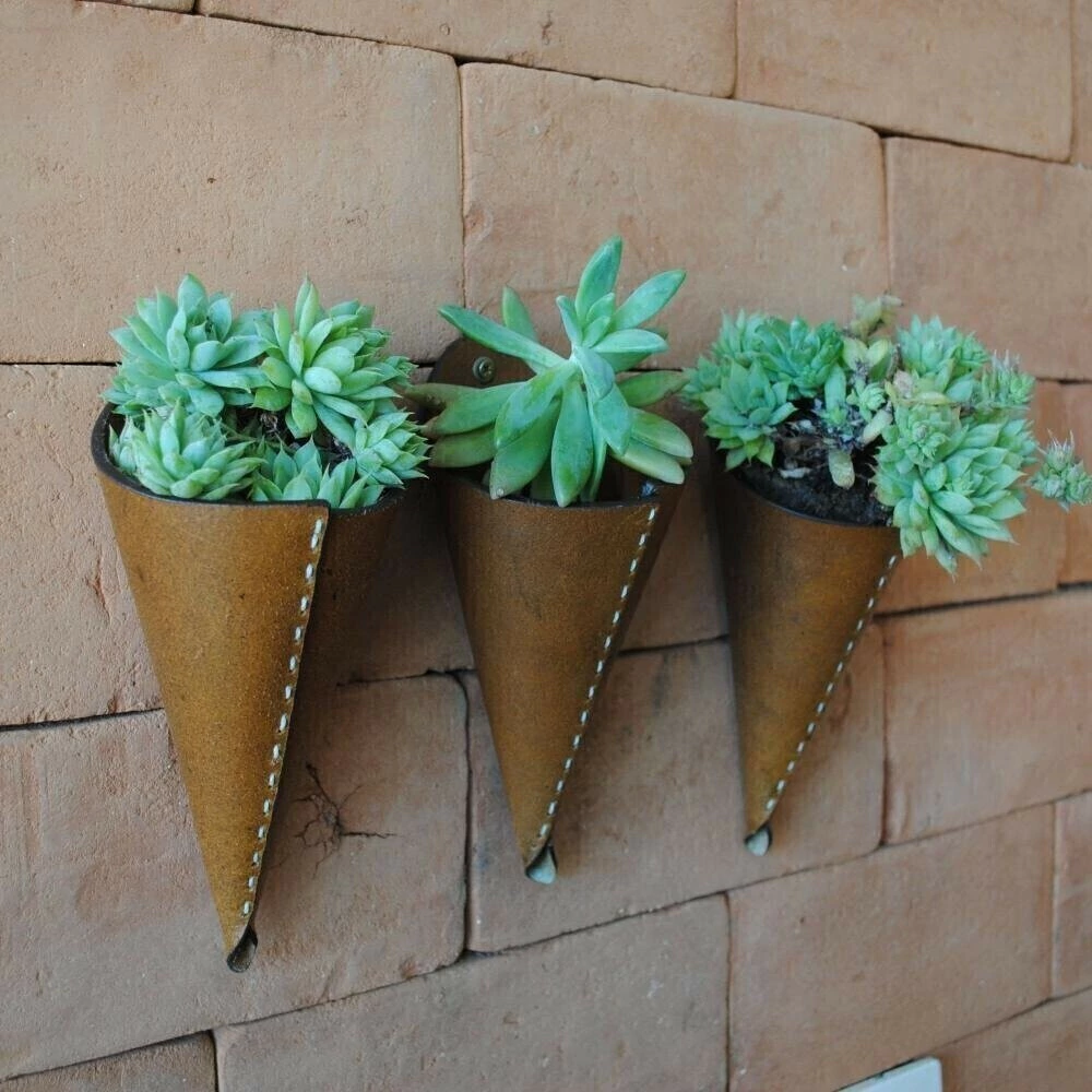 Mini Cachepot Oruy, fabricado em couro legítimo para dar um toque de exclusividade ao seu jardim, podendo ser usado também como porta objetos.
