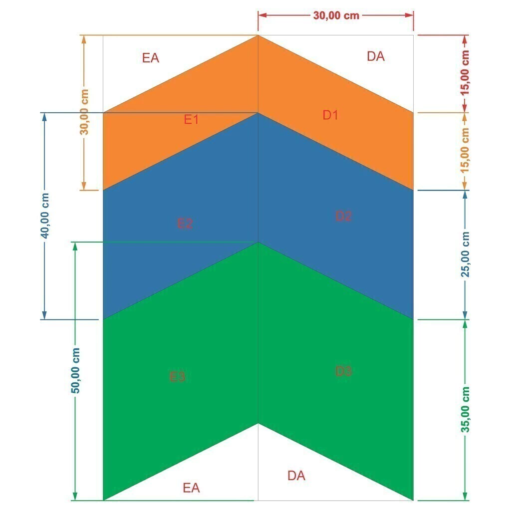 Você pode montar o painel ou cabeceira do seu jeito, escolhendo a disposição dos módulos seguindo as medidas indicadas na última foto.