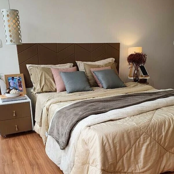 Foram desenvolvidos em mdf revestido com material sintético de qualidade premium para a montagem de cabeceiras, painéis para sala de TV e ambientes diversos, trazendo aconchego e sofisticação.