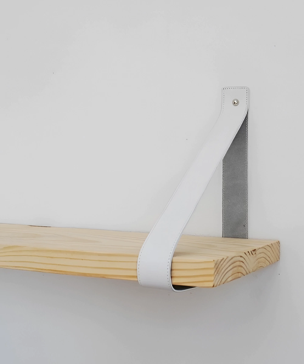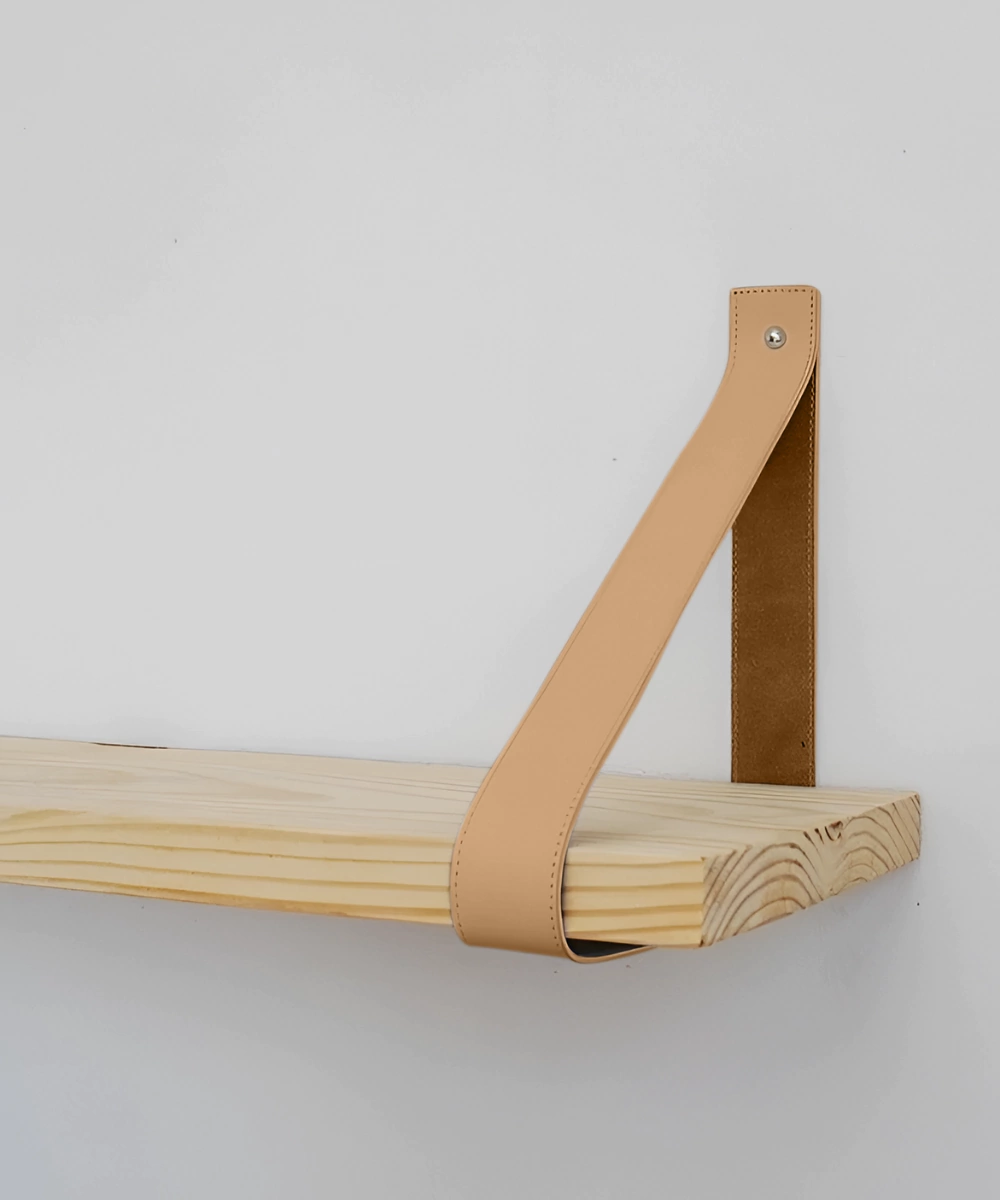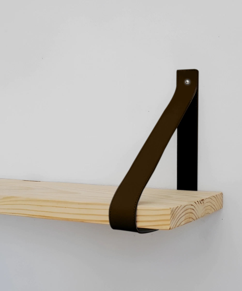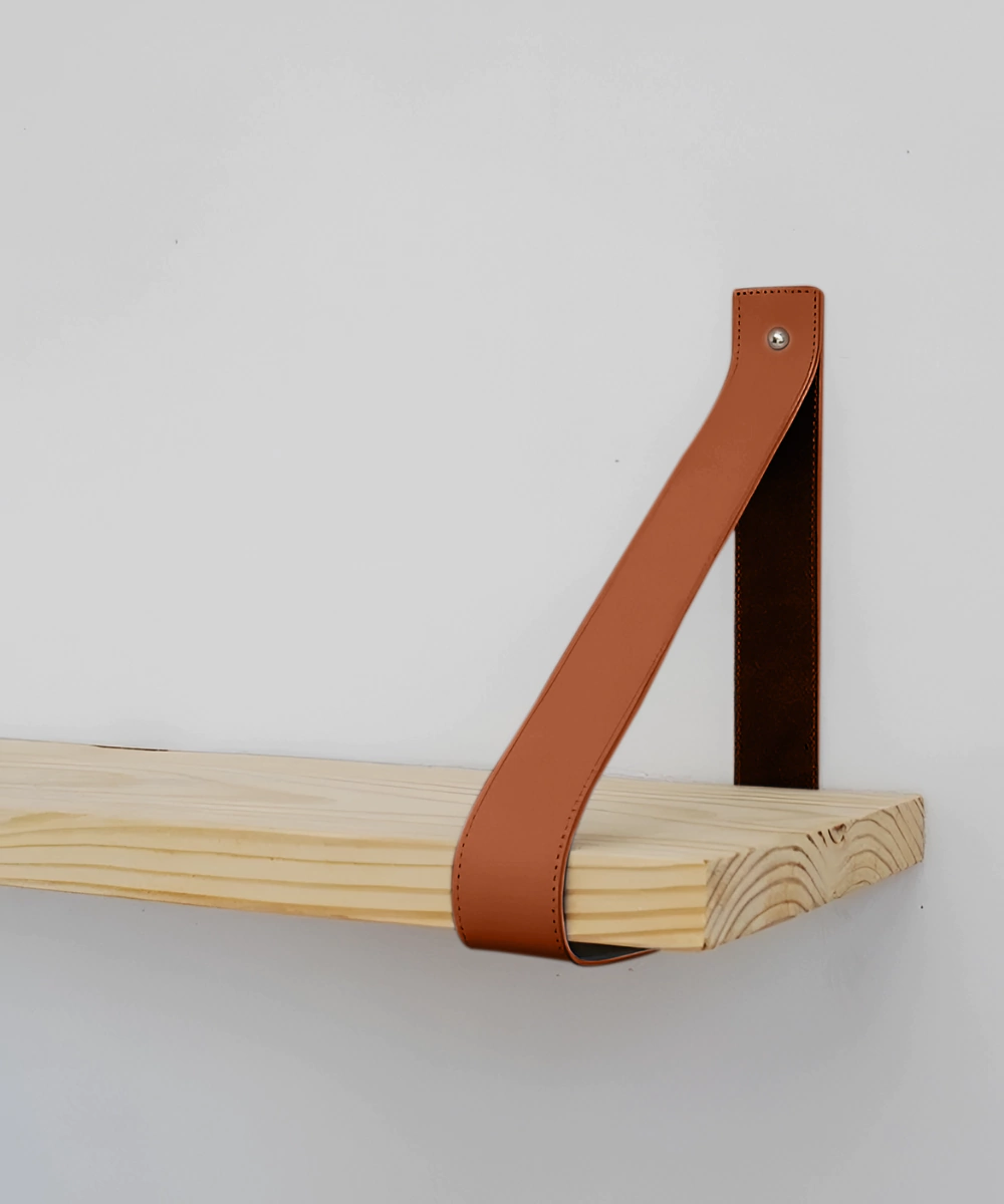 Par de alças para prateleira, produzidas em couro legitimo, essas alças realçam o ambiente em que estão, trazendo um brilho a mais ao local. Se fixam a parede através de buchas e parafusos incluídos no produto, acompanha também o acabamento em metal (disponível em várias tonalidades).