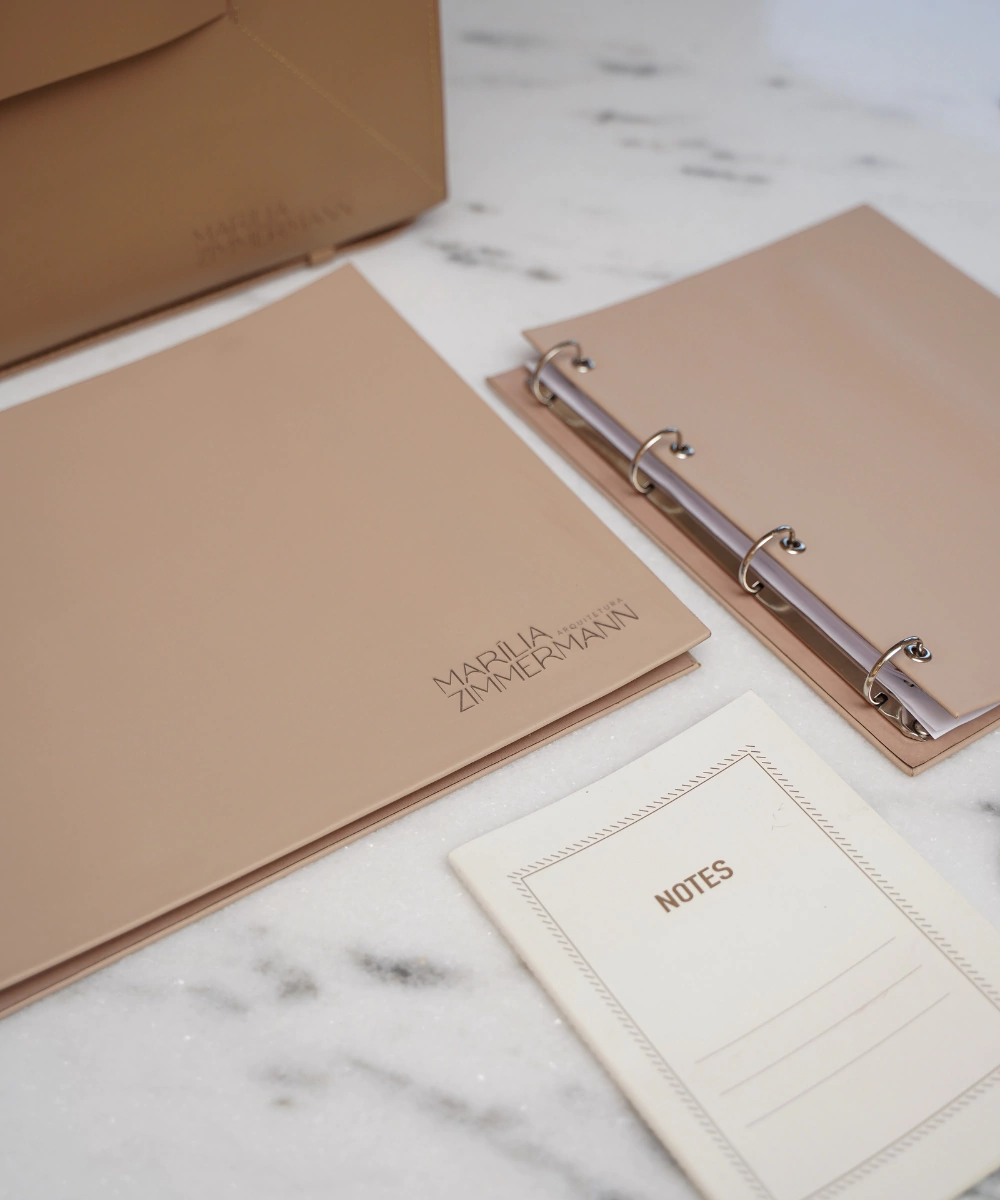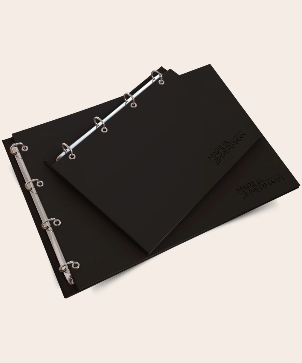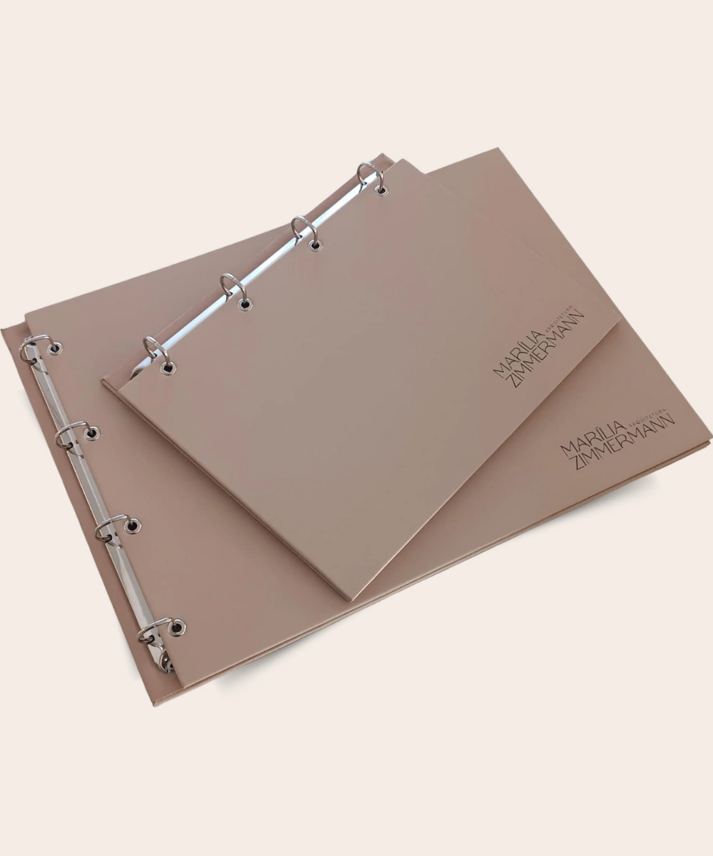 A Pasta Fichário foi desenvolvida em material sintético de qualidade premium e está disponível em três opções de cores: nude, preto ou caramelo, e em dois tamanhos: A3 ou A4, para organizar seus projetos da melhor forma.