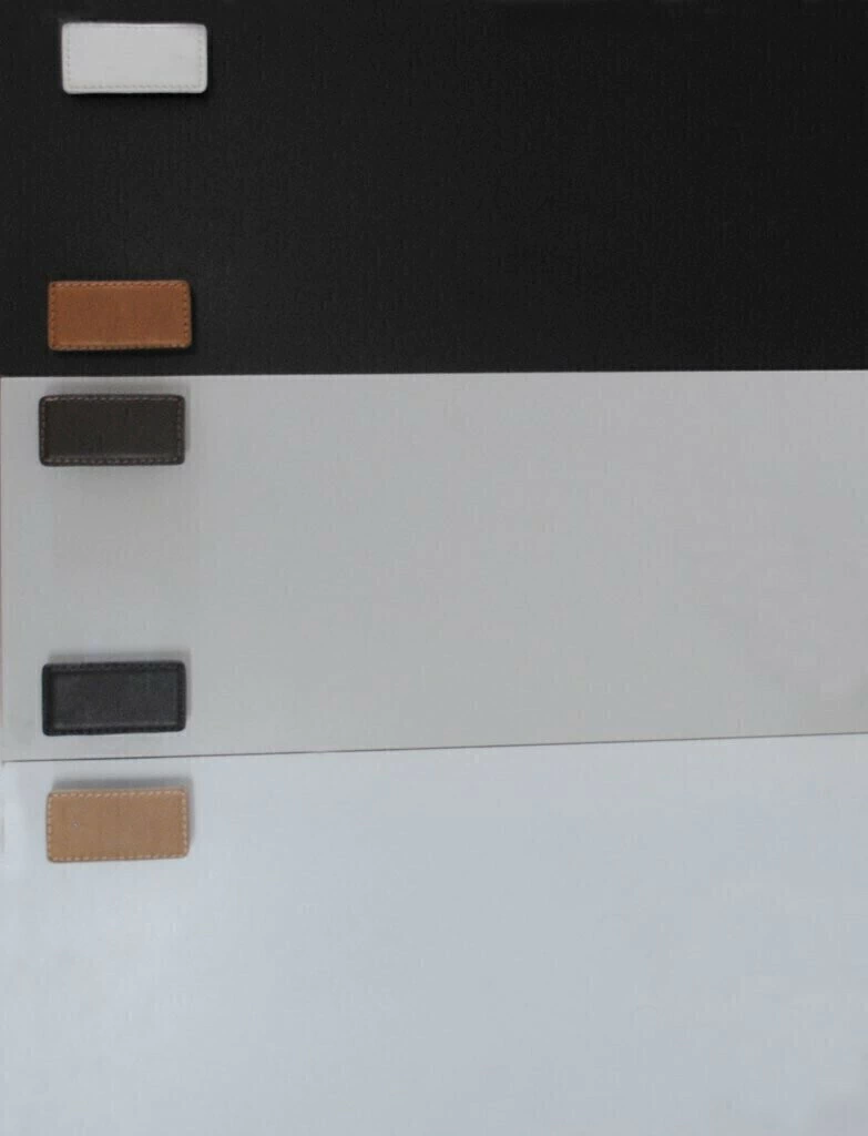 Puxador Candy, peça desenvolvida com metal revestido em couro legítimo e pesponto nas bordas, garantindo um acabamento impecável a peça.