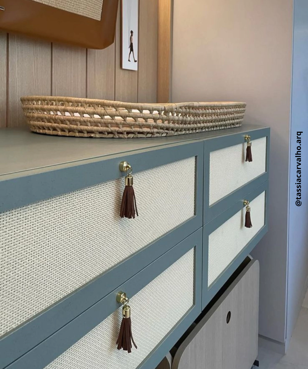 O Puxador Franja Marie Tamanho P é uma peça sofisticada que harmoniza uma base em metal e uma franja que traz fluidez ao produto.