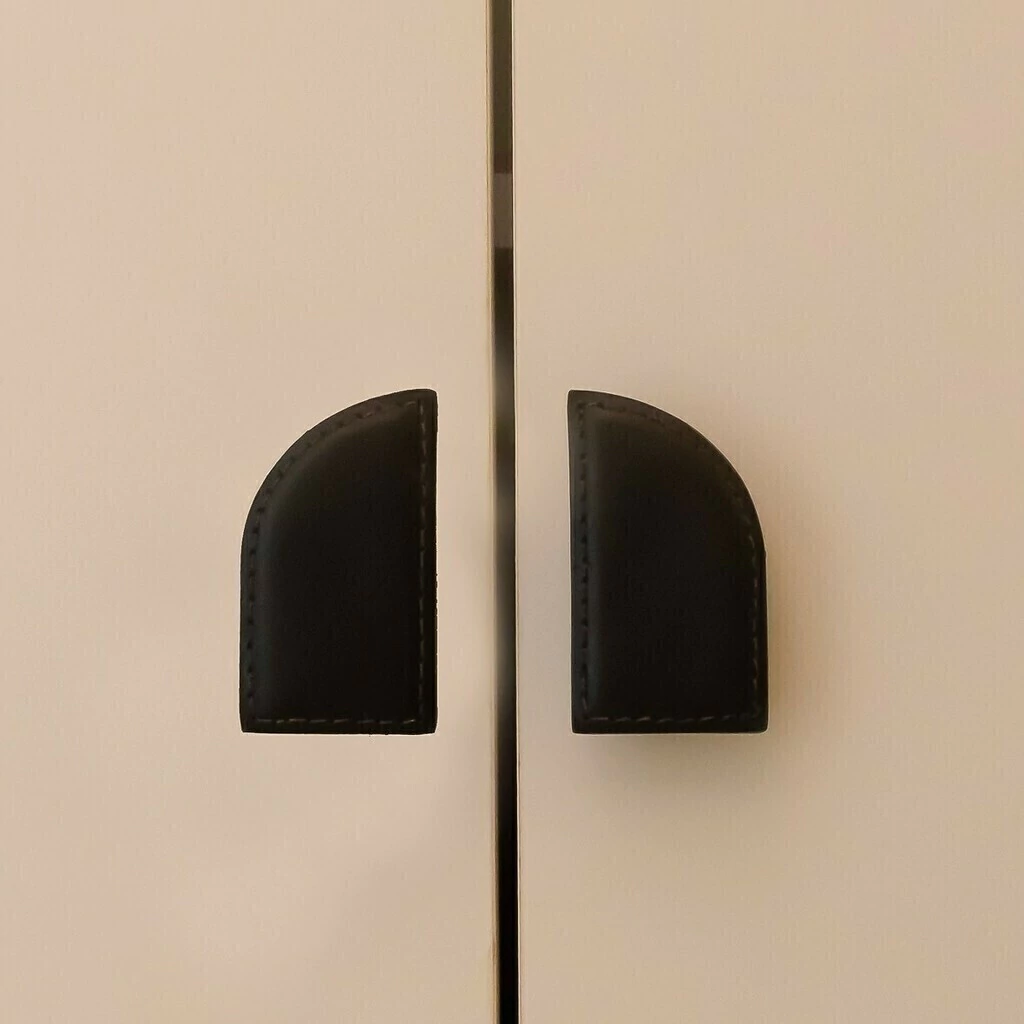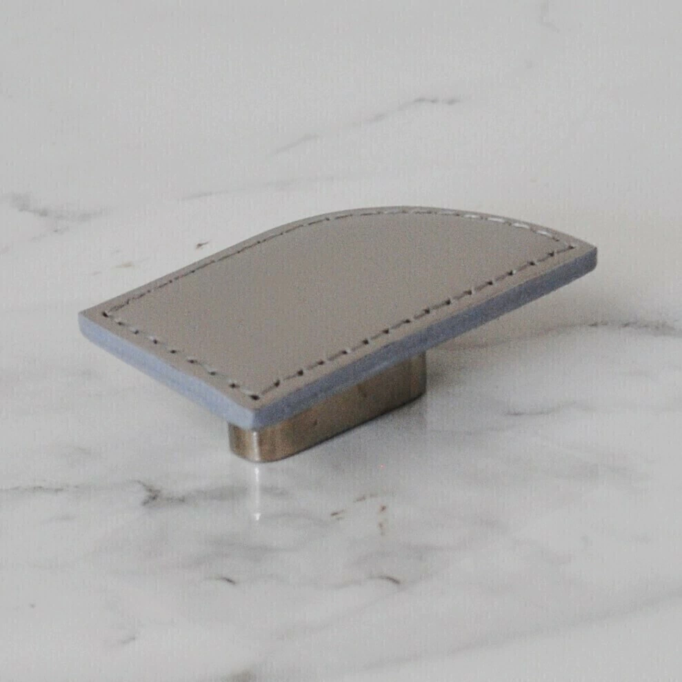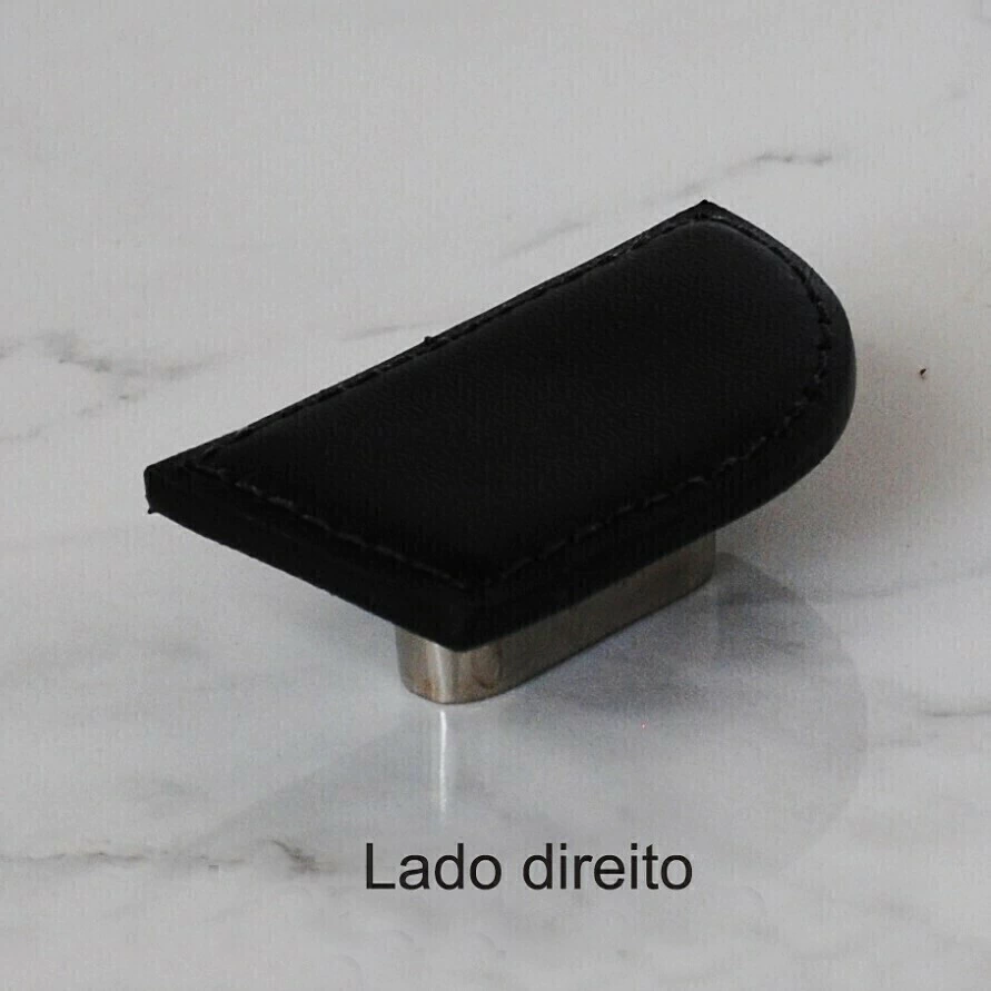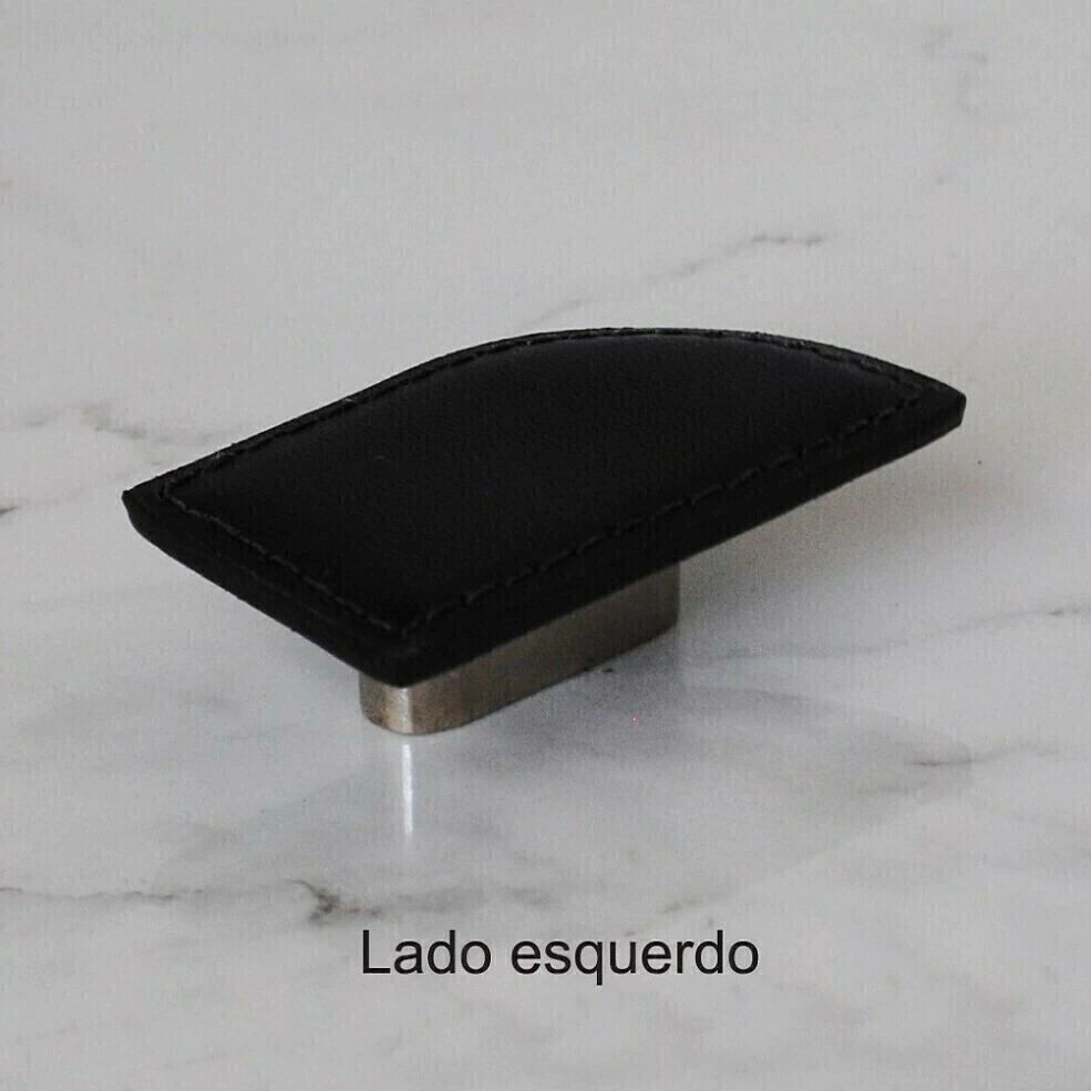 Puxador Mary M, peça criada pela renomada arquiteta e designer Paola Cury, desenvolvida com metal revestido em couro reconstituído e pesponto nas bordas, garantindo um acabamento impecável.