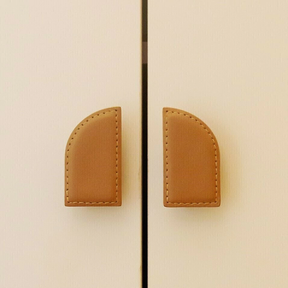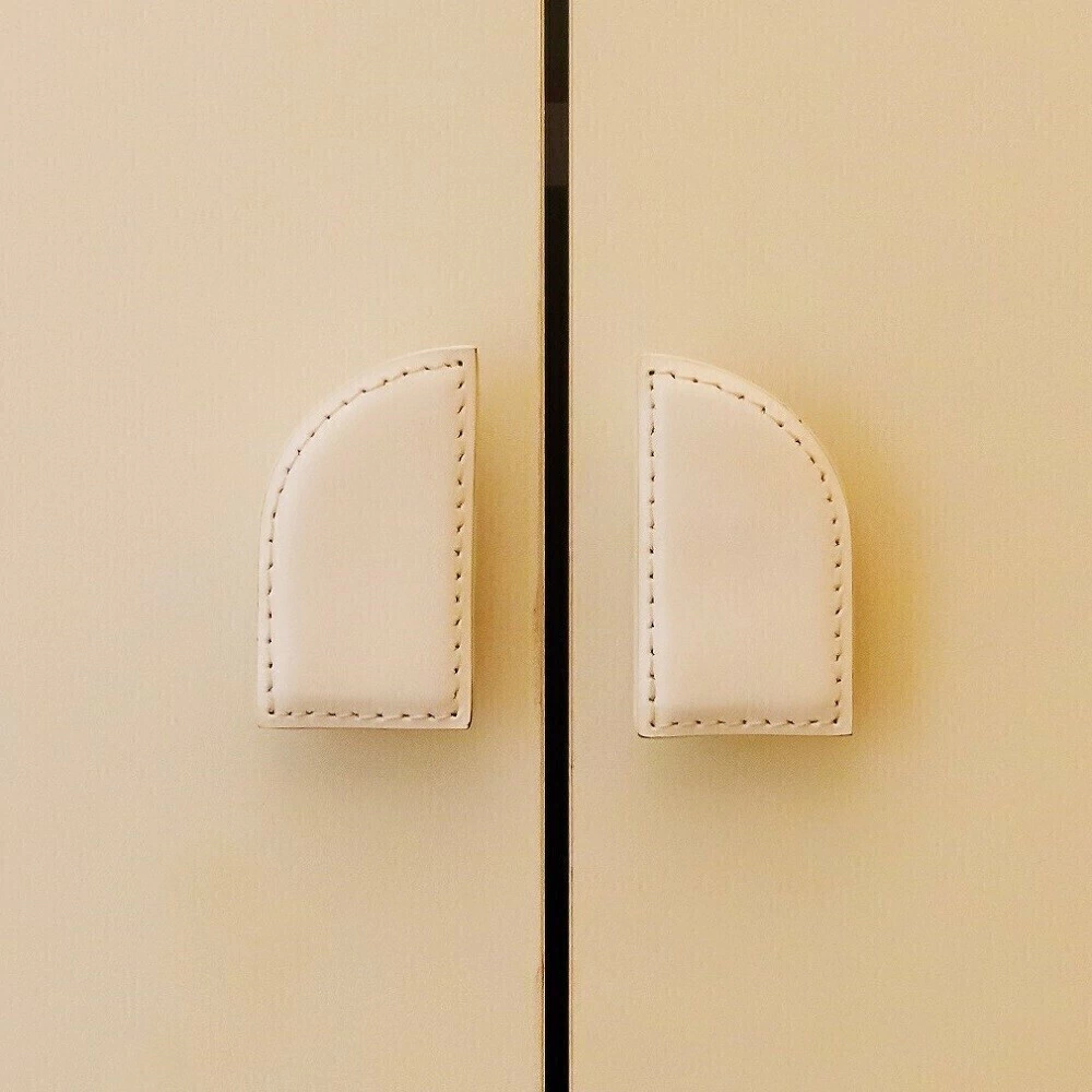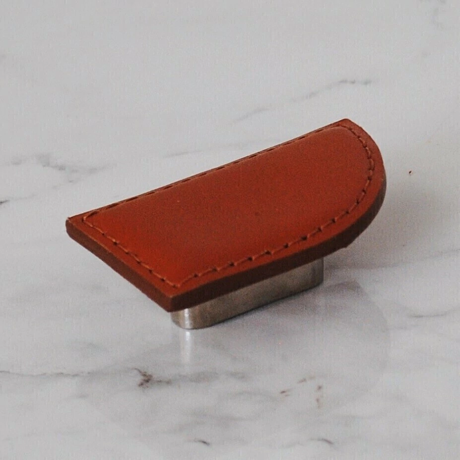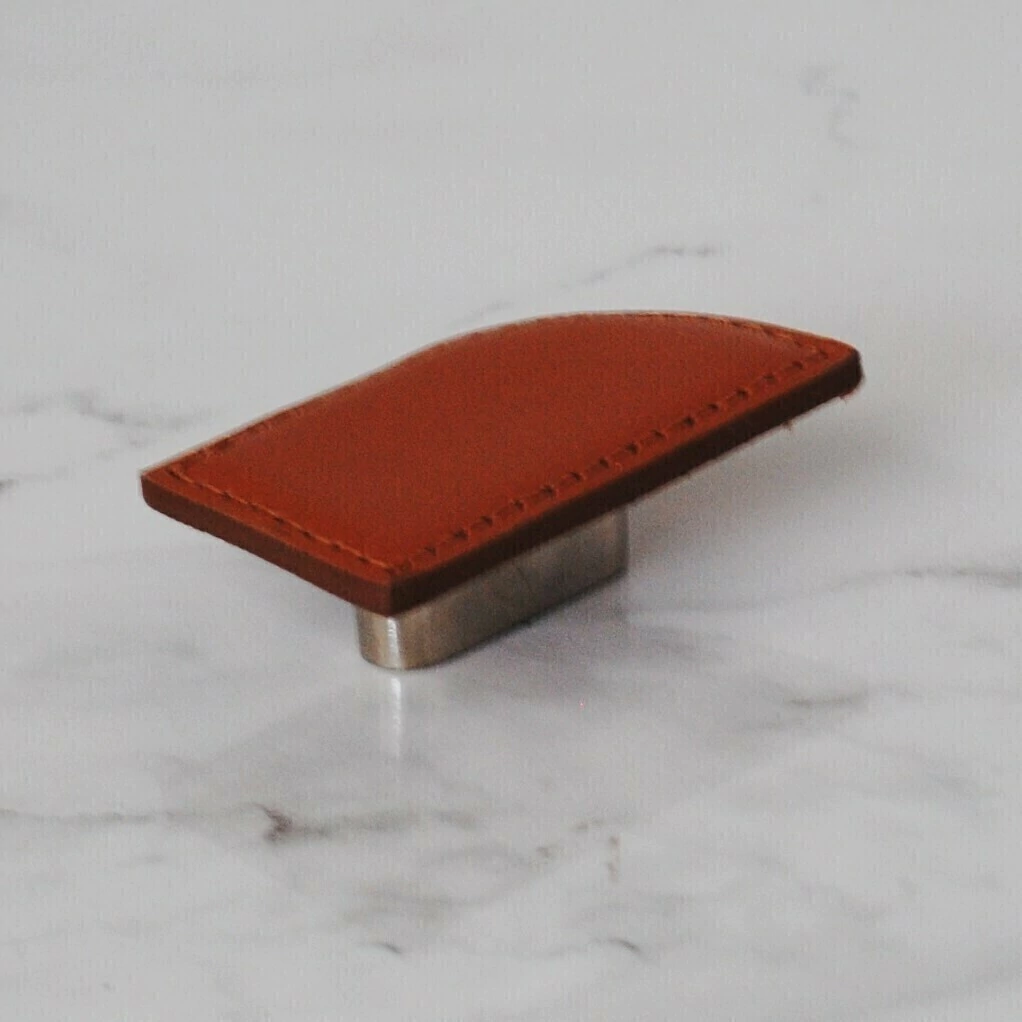 Puxador Mary M, peça criada pela renomada arquiteta e designer Paola Cury, desenvolvida com metal revestido em couro reconstituído e pesponto nas bordas, garantindo um acabamento impecável.
