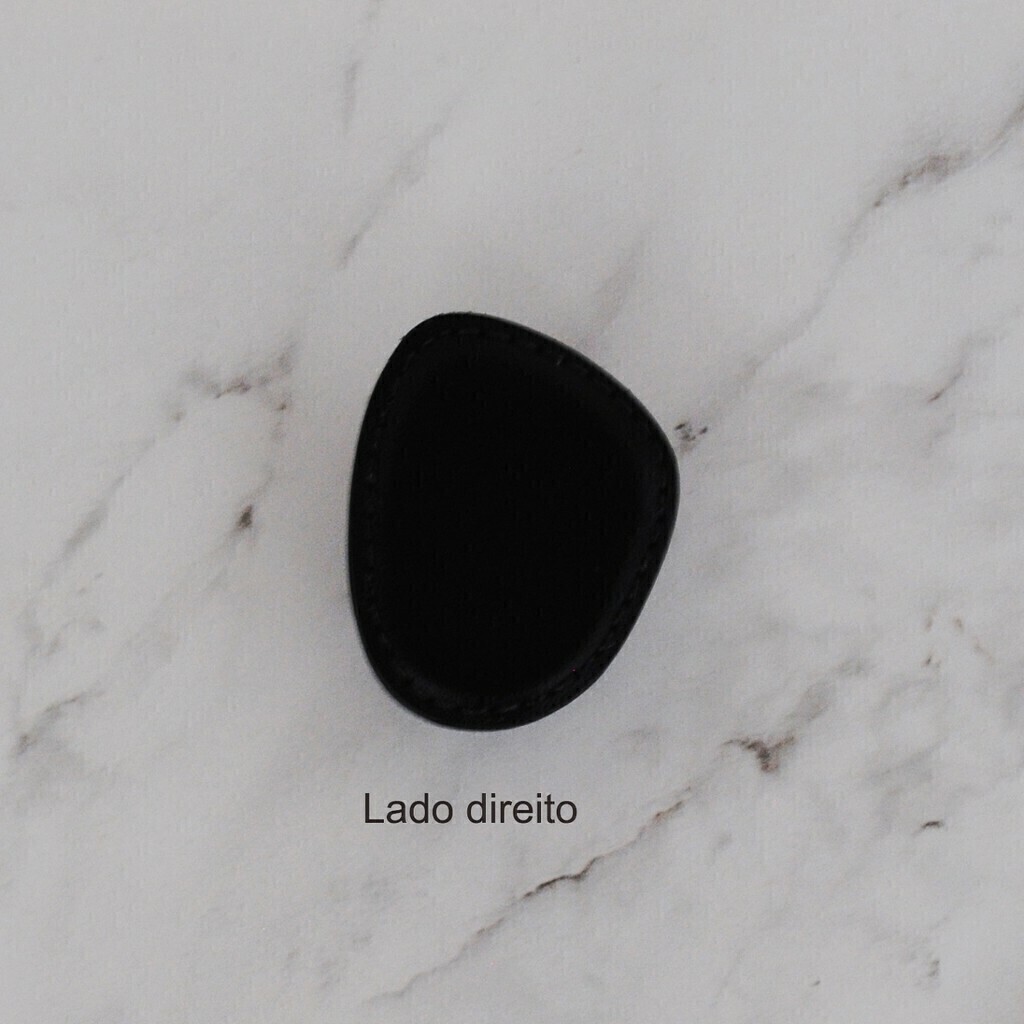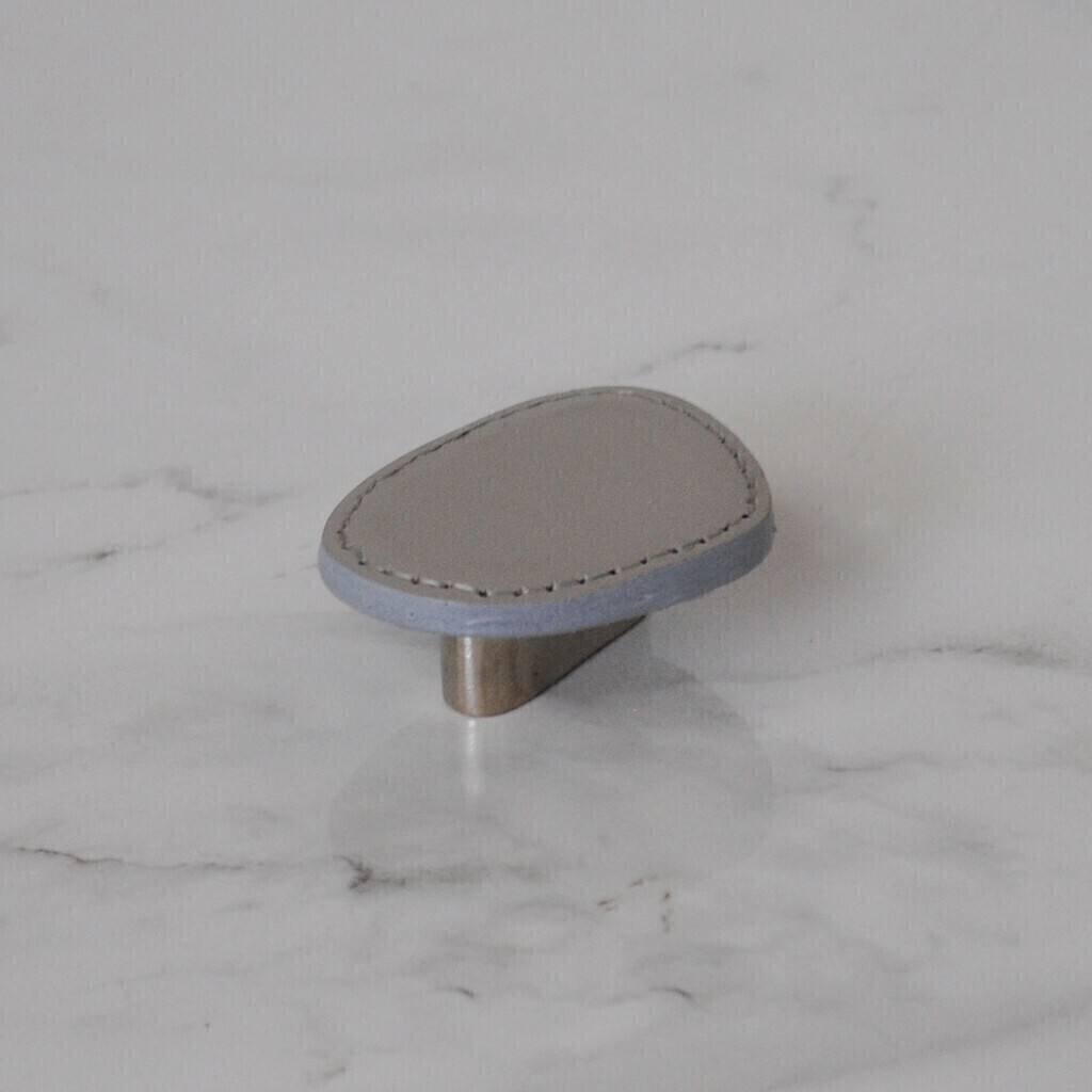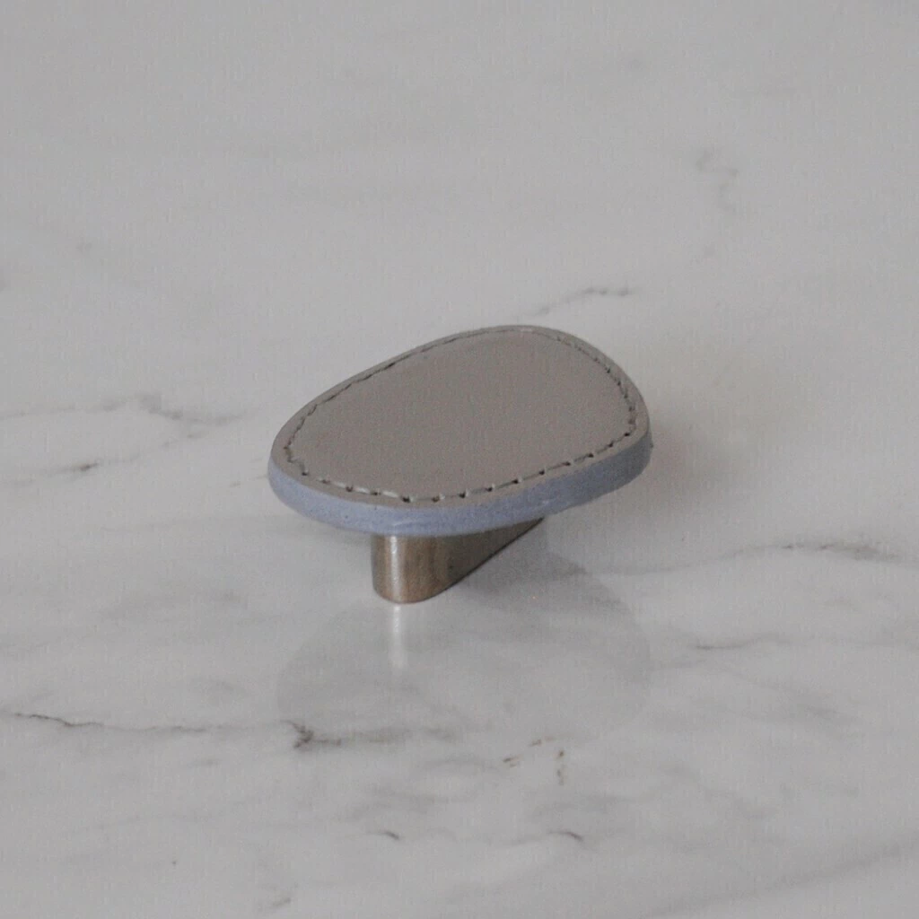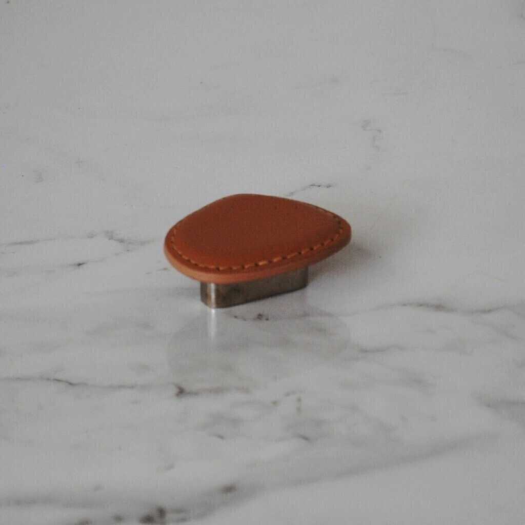 Puxador Orgânico P, peça criada pela renomada arquiteta e designer Paola Cury, desenvolvida com metal revestido em couro reconstituído e pesponto nas bordas, garantindo um acabamento impecável.