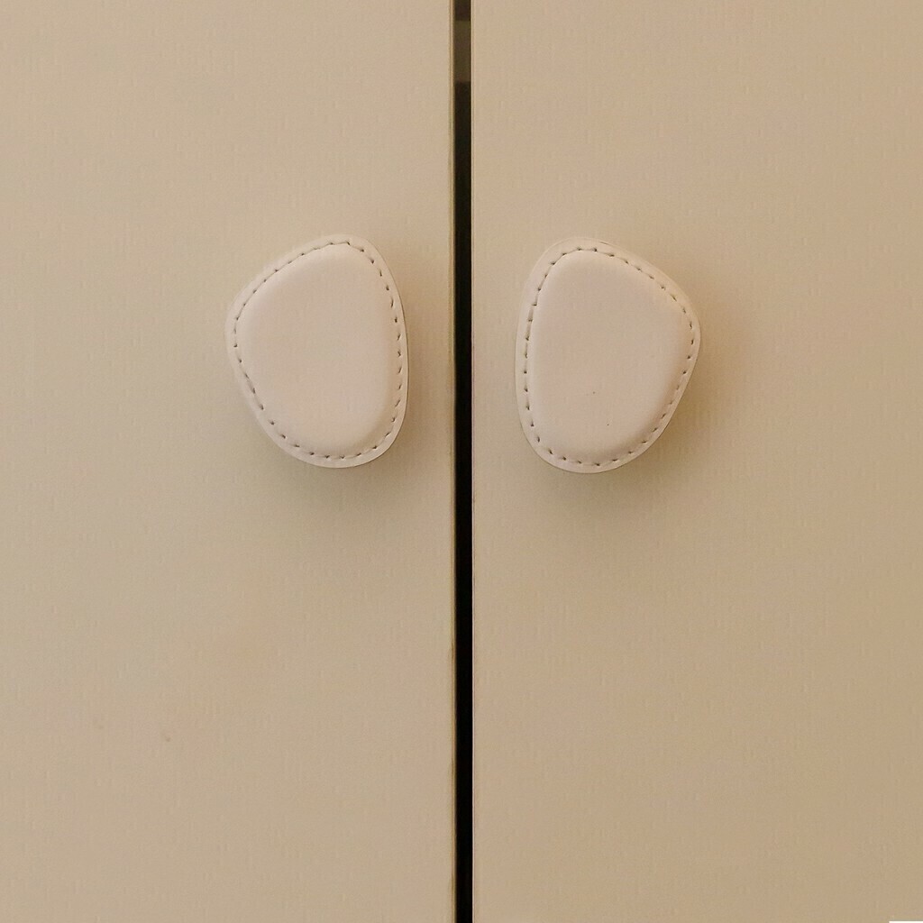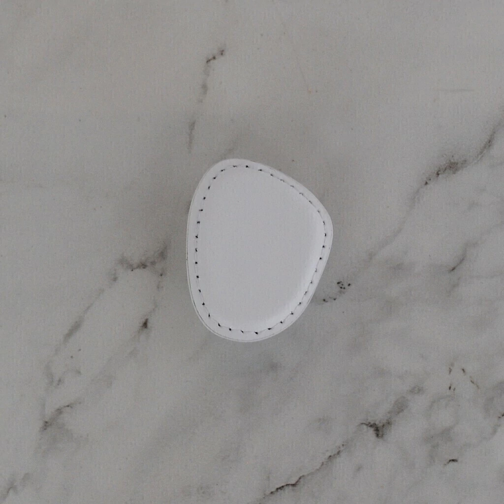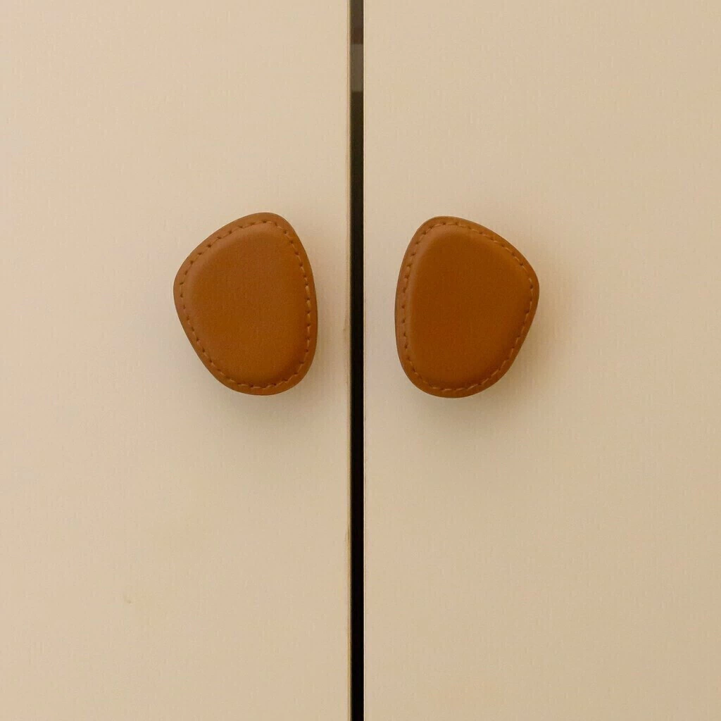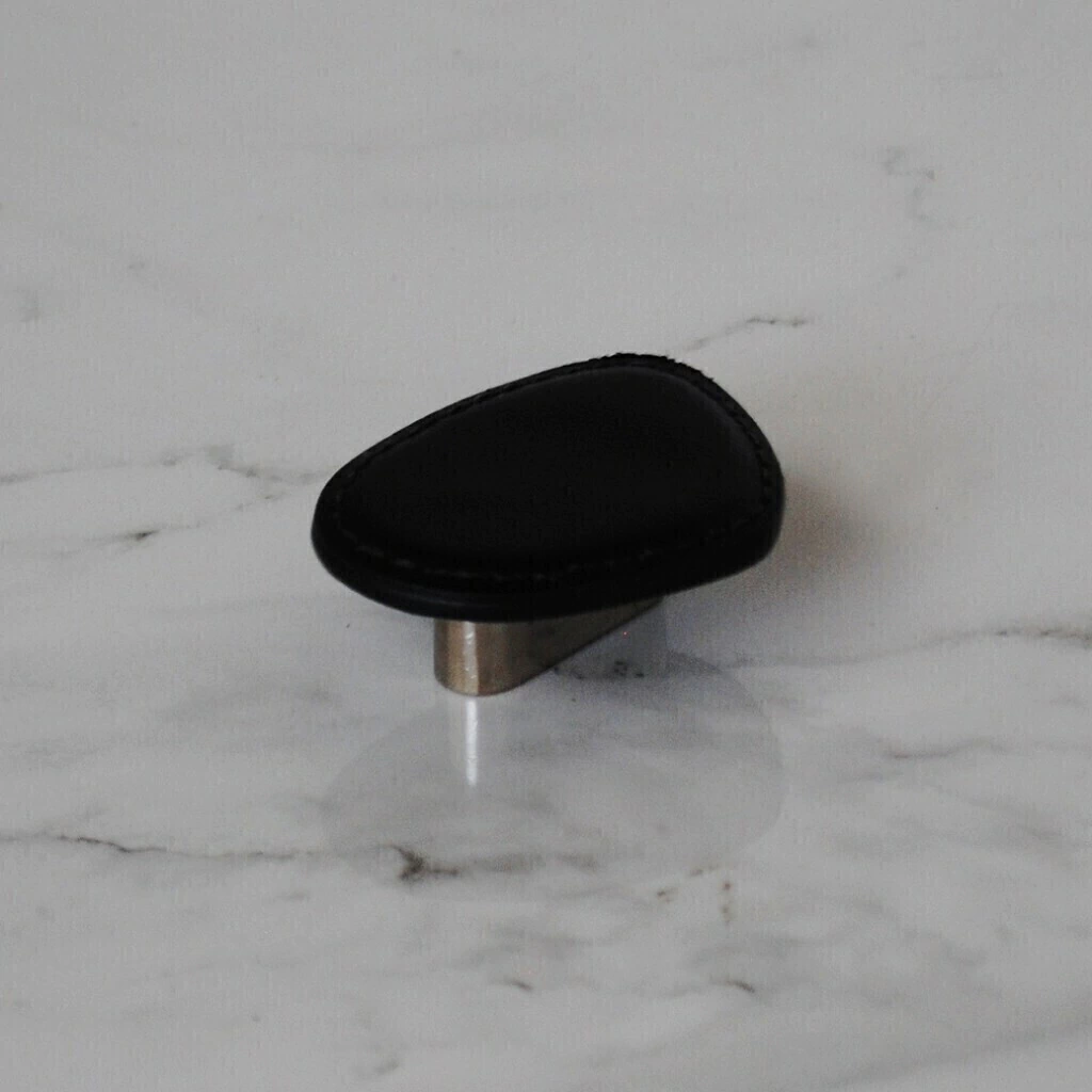 Puxador Orgânico P, peça criada pela renomada arquiteta e designer Paola Cury, desenvolvida com metal revestido em couro reconstituído e pesponto nas bordas, garantindo um acabamento impecável.