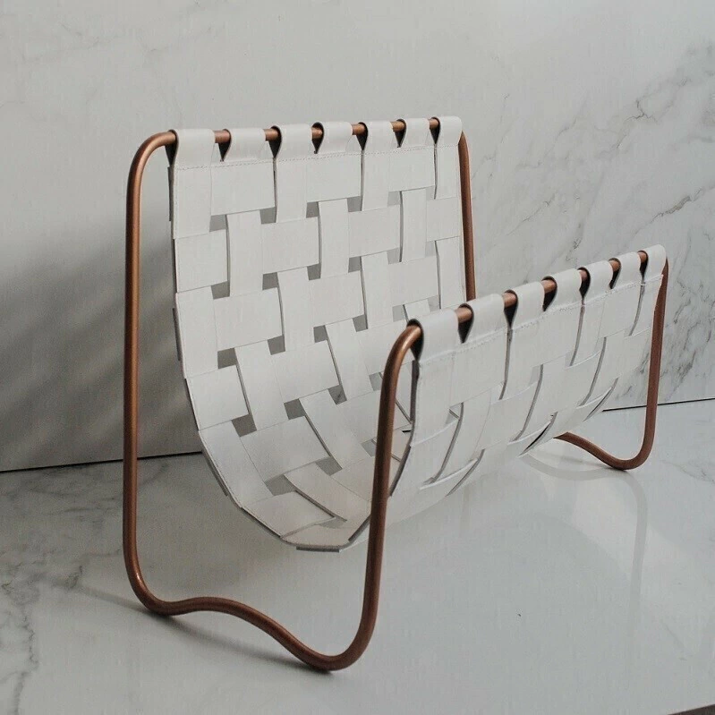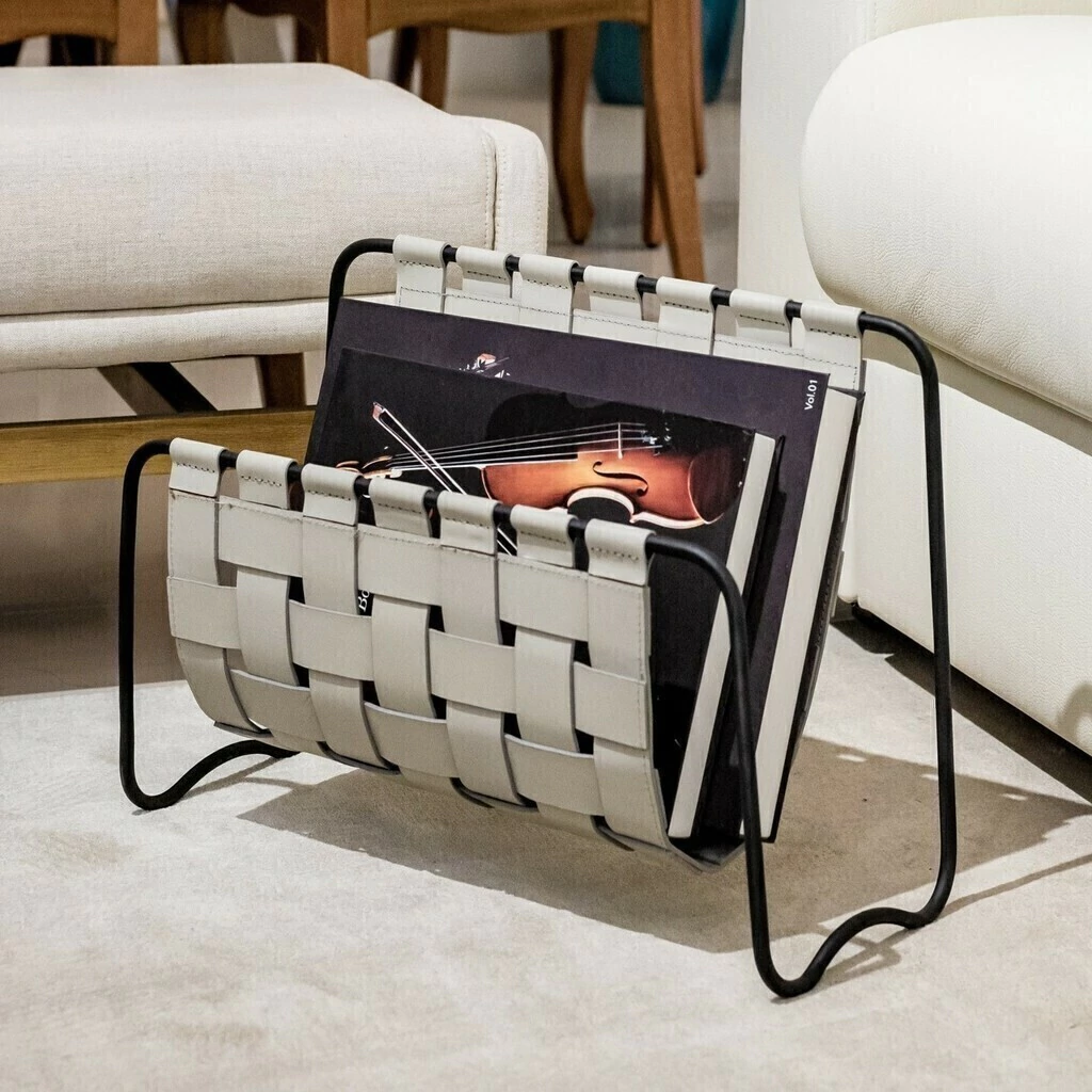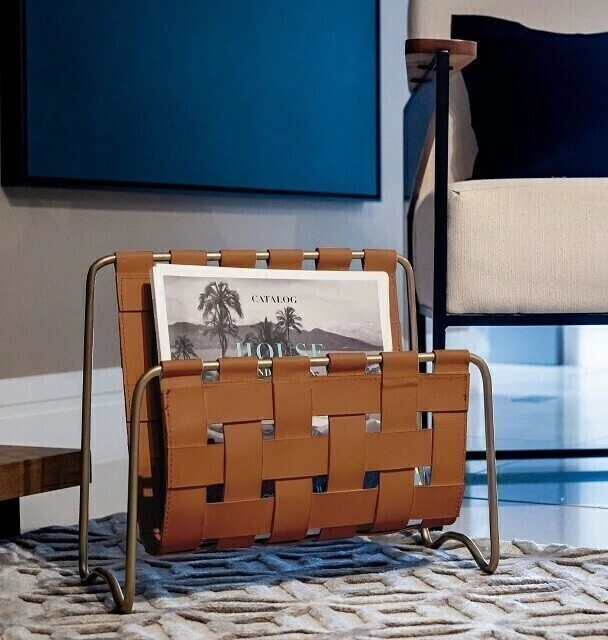 Com um design original e produzido em couro legítimo, este revisteiro ousado e moderno organiza revistas e livros enquanto decora.